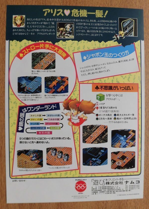 1988年 ナムコ 【 メルヘンメイズ ( MARCHEN MAZE ) 】 A4のカタログ一枚