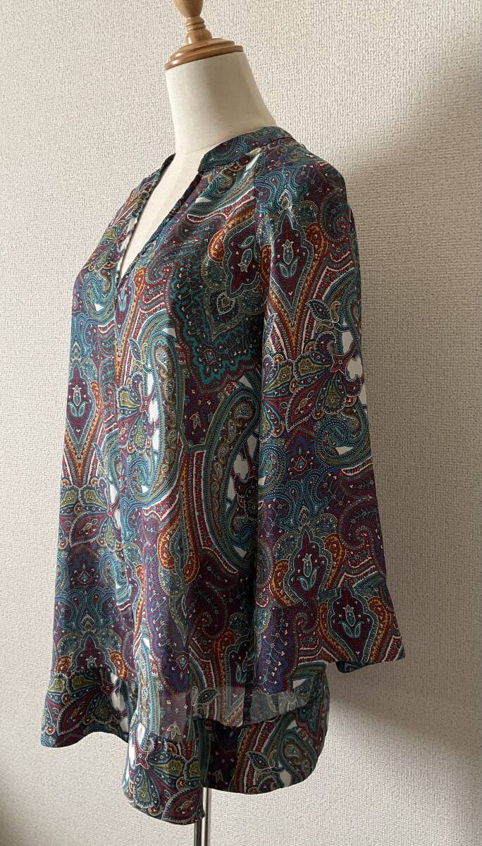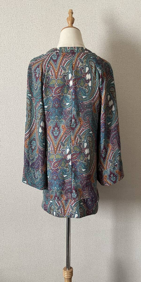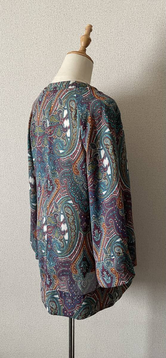 ワイドスリーブ ラグラン袖 Vネック ペイズリー柄 マッドサテン