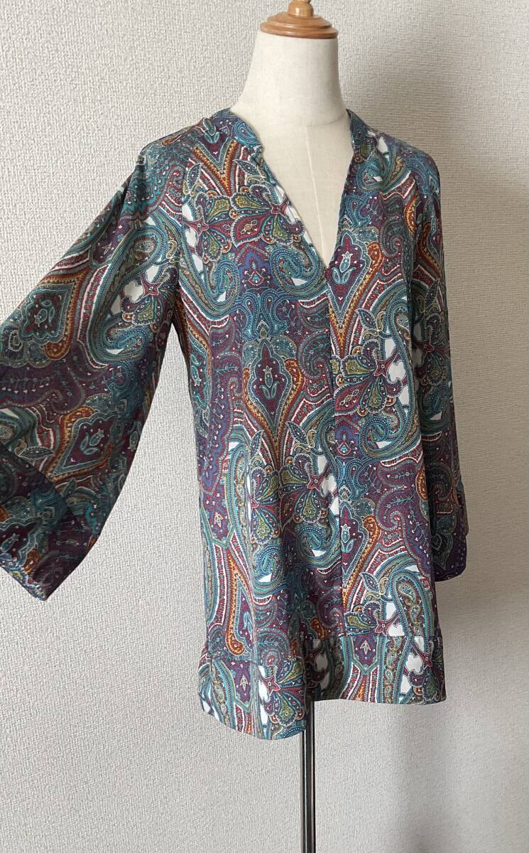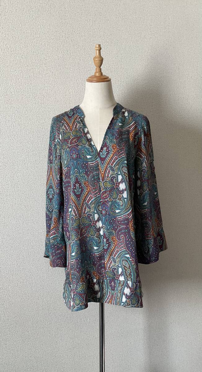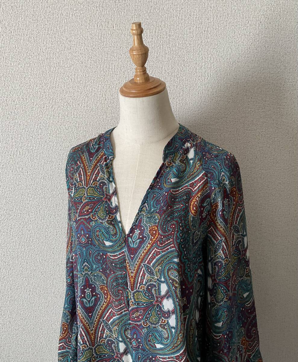 ZARA BASIC ワイドスリーブ ラグラン袖 Vネック ペイズリー柄 マッドサテン チュニック