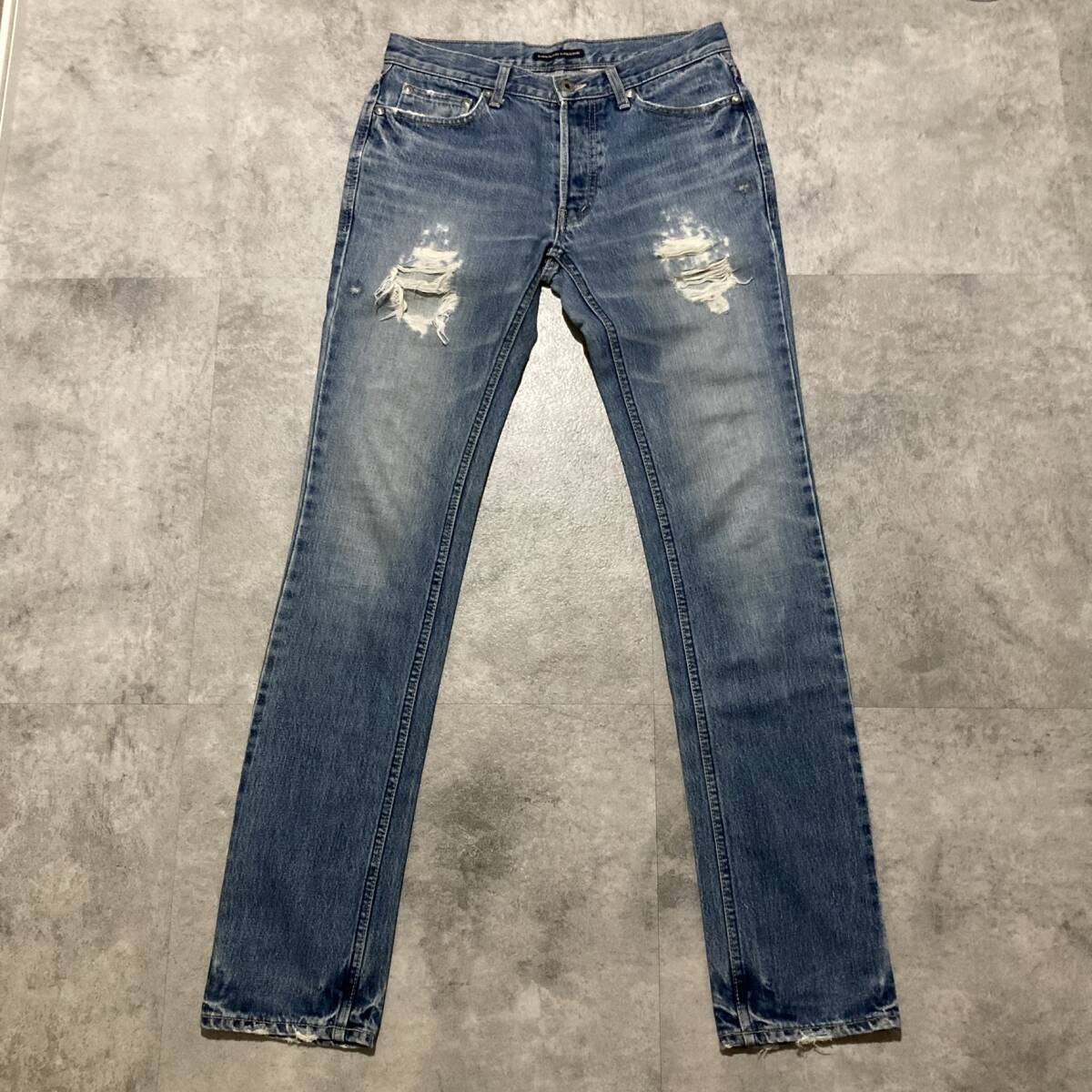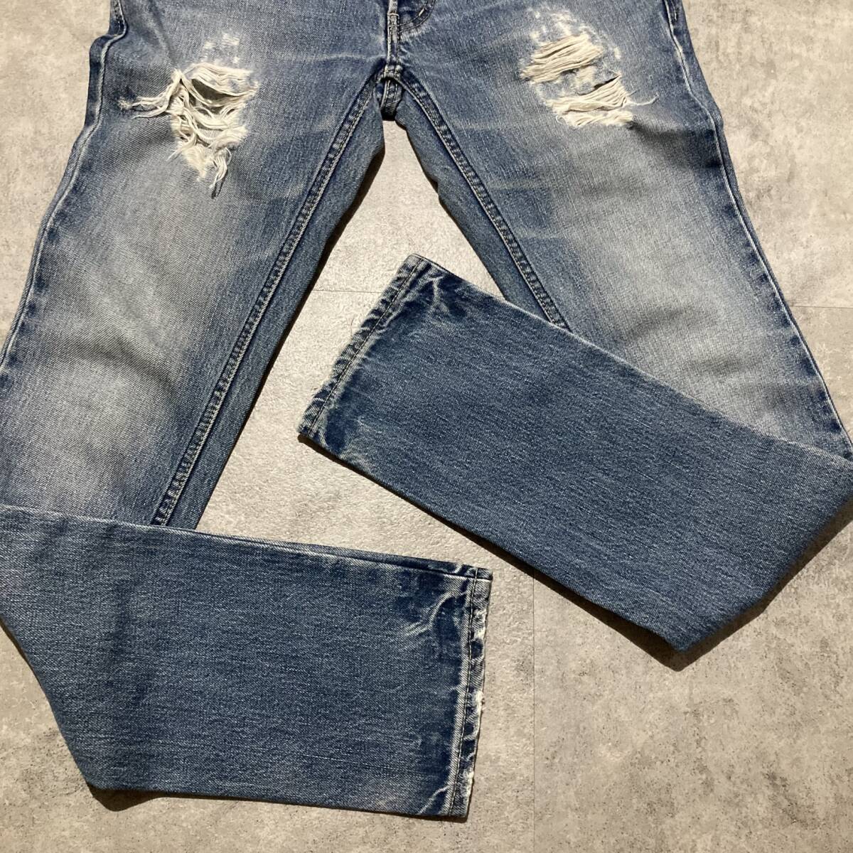ローライズ・スリムストレートデニムパンツ・ジーパン・ジーンズ・テーパード・スリム・スキニー・フレアデニム・ベルボトム・ヴィンテージ・ビンテージ・ダメージ加工・ユーズド加工