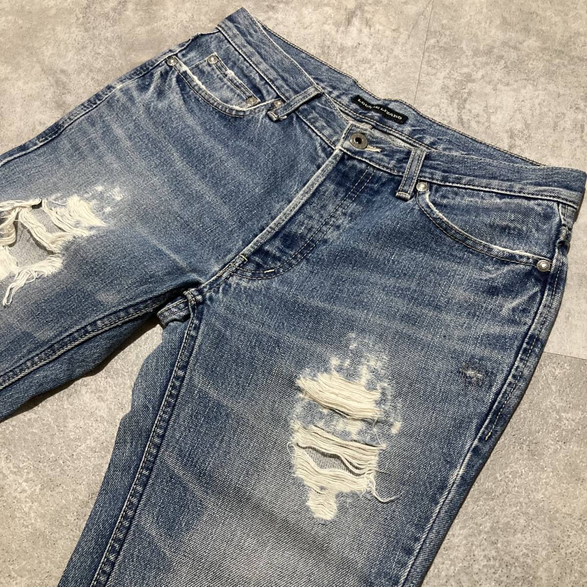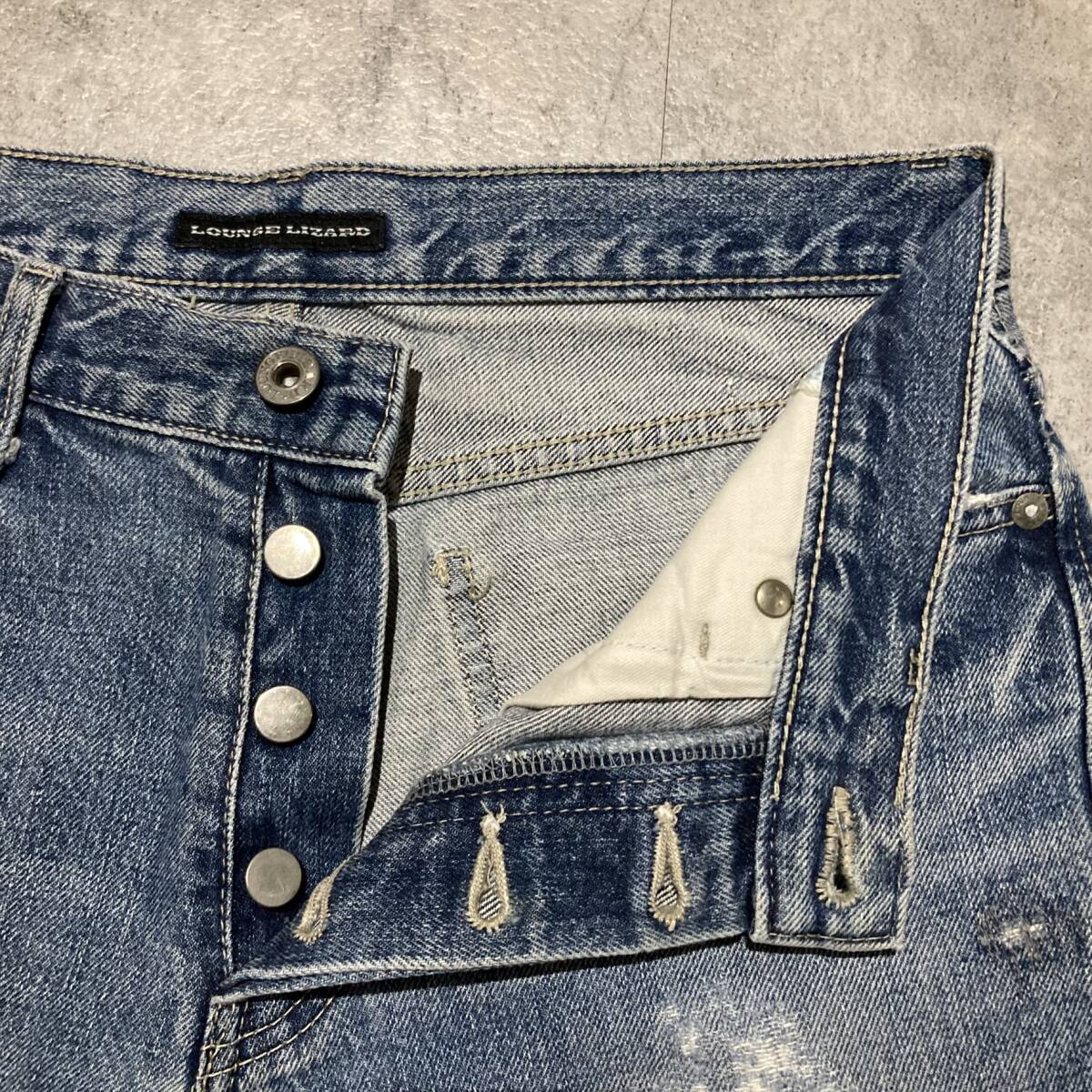 【LOUNGE LIZARD】ラウンジリザード クラッシュ加工 デニムパンツ スリムテーパード 日本製 ストレート ブルー ジーパン ジーンズ