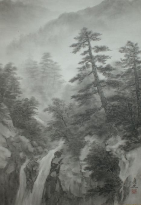 ・作者名: 羽田埜貞史 ・画題:「富士山水」・技法:掛軸(直筆)〈278〉(A2-HIO-R4-6-24-258.)