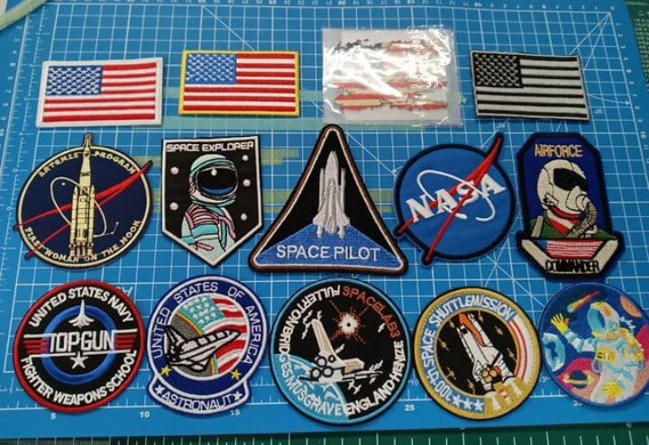 宇宙や軍をテーマにした刺繍ワッペン12枚セット。