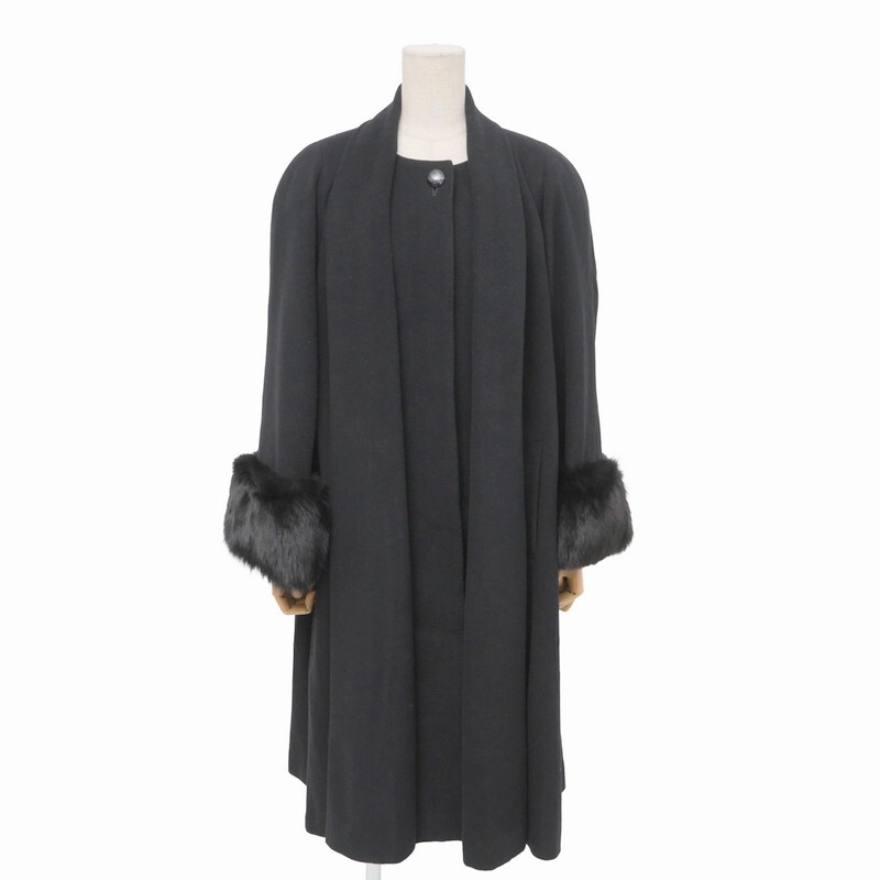 | GR8039=パリエンヌ/PARIENNE*ウールカシミヤ*袖口フォックスファー*リアルファー*ロングコート*サイズ7*ブラック系 | |||