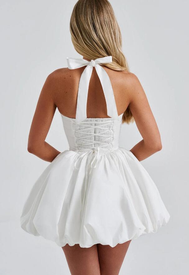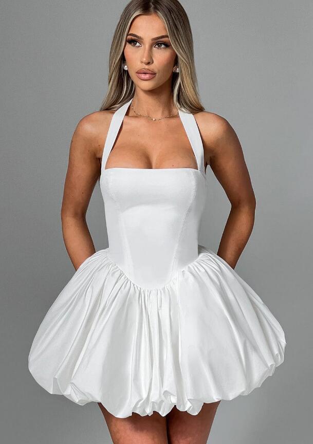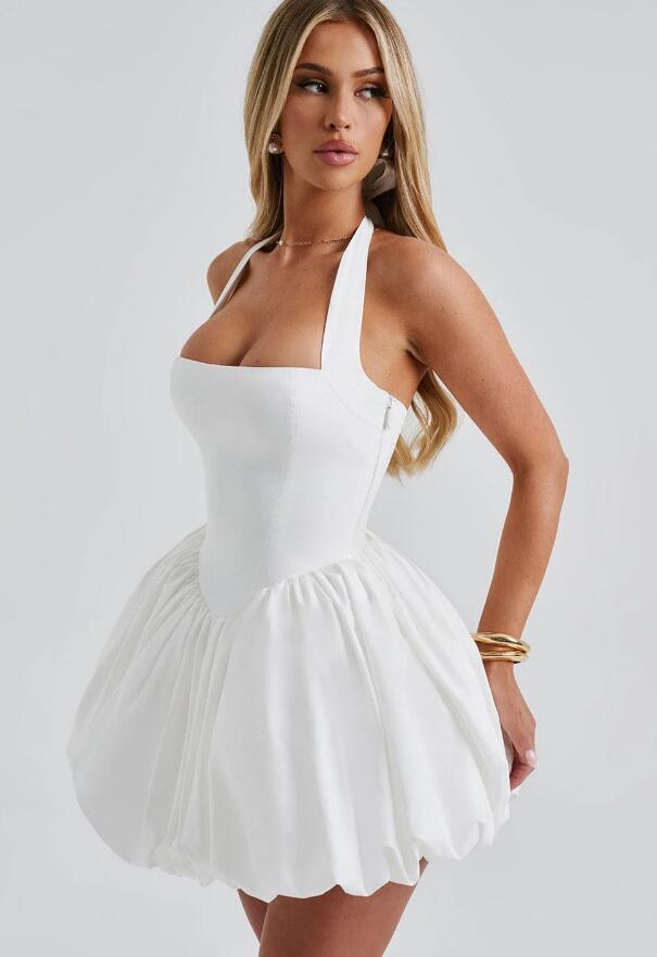 405 ワンピースladiesレディース ◇ 綺麗めシルエット ◇ 素敵   ホルターネック  ドレス  ホワイト