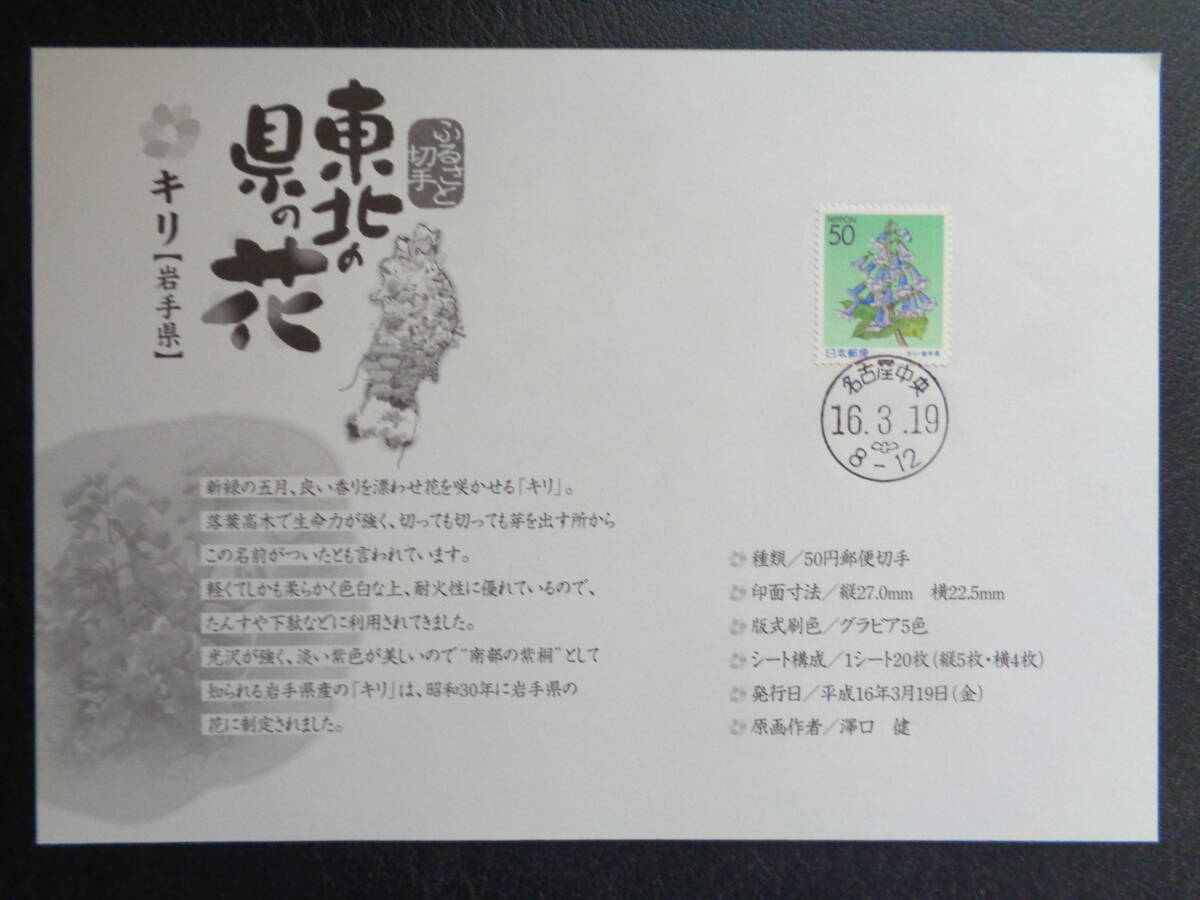 初日印     切手説明書    2004年    ふるさと切手   東北の花    岩手県