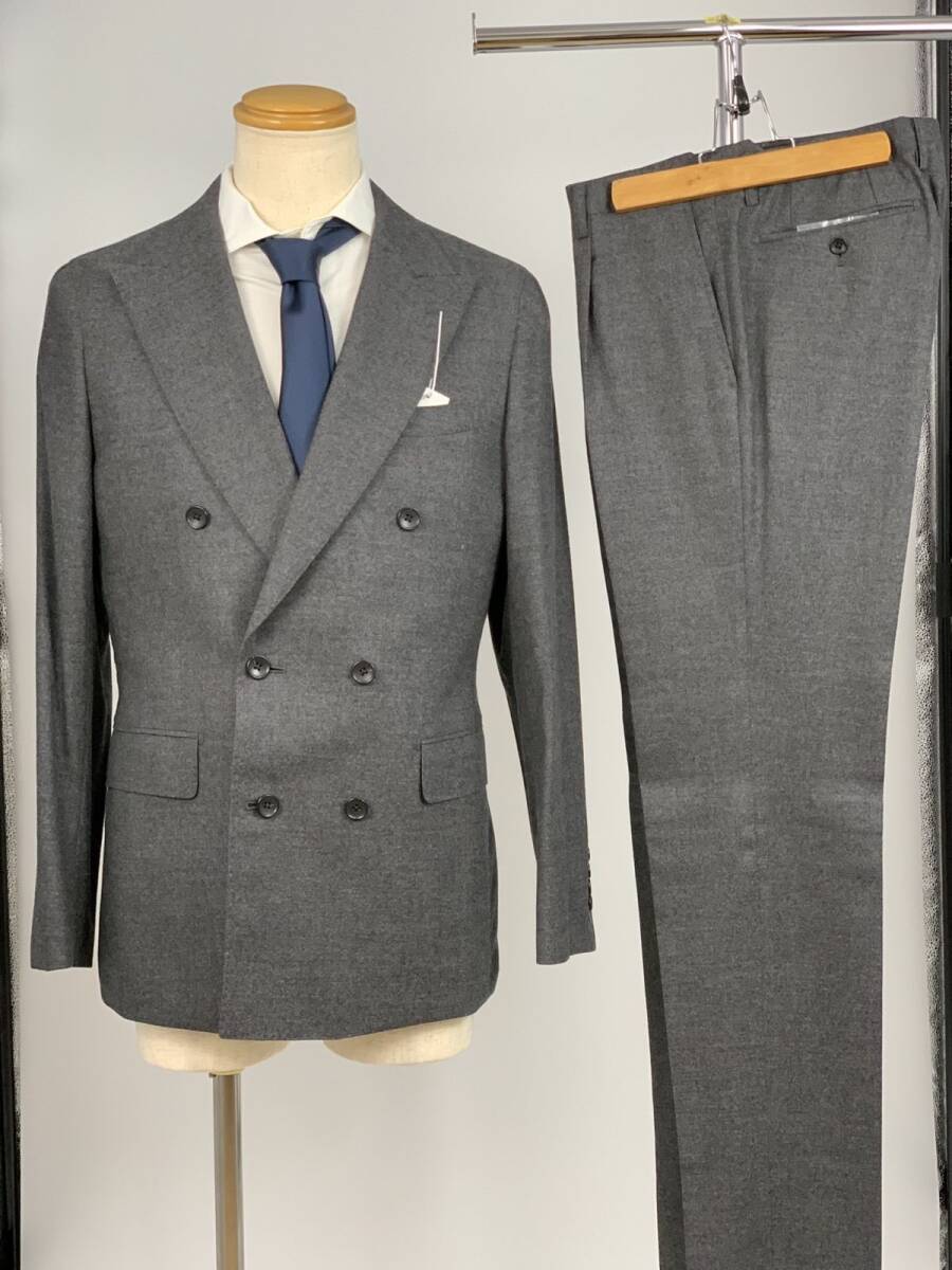 新品 9.1万円 大手百貨店扱い 冬物 DRAGO ドラゴ 伊製生地 SUPER130’ ウール100% 毛 ダークグレー ダブル スーツ 3ボタン A6 L 冬 74