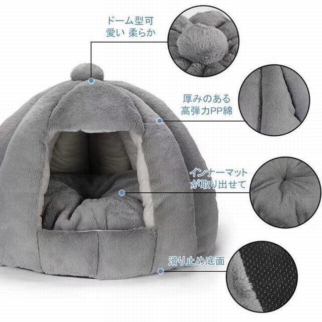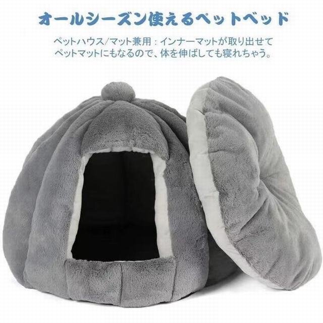 使用方法2WAY: 狭い所に入る習性があるネコちゃんや小さなワンちゃんを誘惑!インナーマットが取り出せてペットマットにもなるので、体を伸ばしても寝れちゃう。 ハウスだけではなく、ひっくり返すとふわふわのクッションでしても使えます。縫い目が細くて縫製は丈夫で破れにくいです。 かわいいデザインで、部屋の創造的なインテリアにもなります。軽量でポータブルなデザインで、ソファー、椅子、ベッド、床、ソファ、カーシートなどに置いて使用できます。