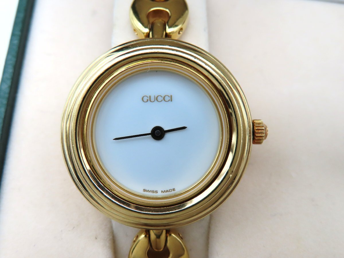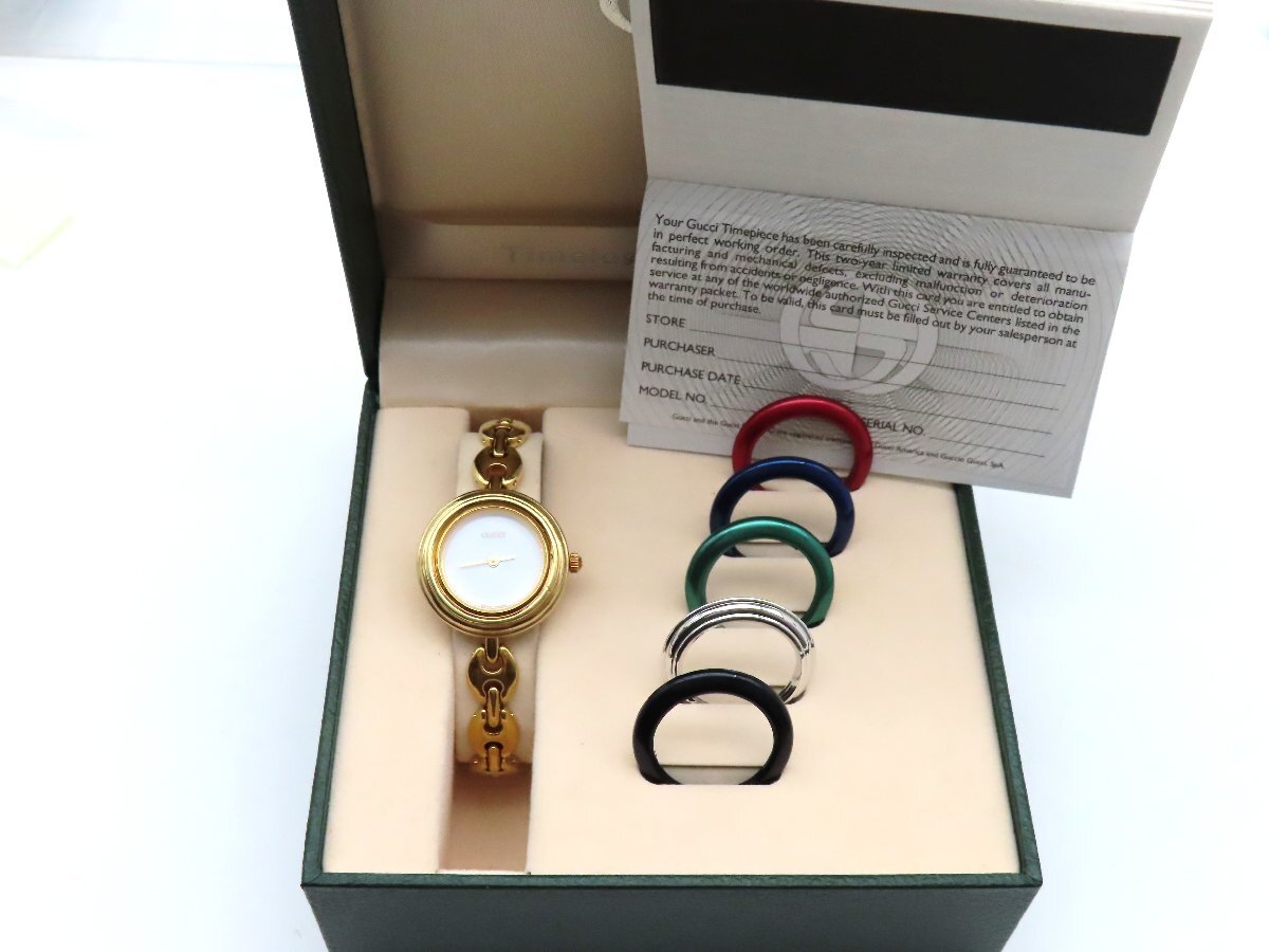 1円 グッチ 11/12.2 チェンジベゼル GP ホワイト文字盤 レディース 稼働 QZ ケース 保 替えベゼル 29403 NHRE