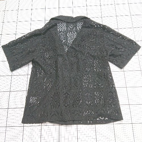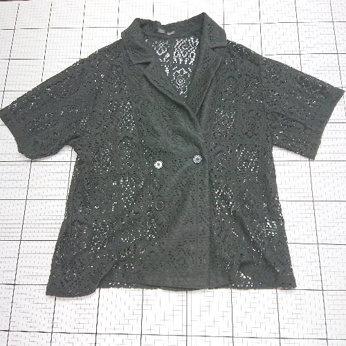 ◇ ⊂ Heather ヘザー 透け柄 半袖 半袖レース テーラードジャケット サイズF ブラック系 レディース E