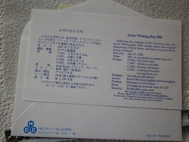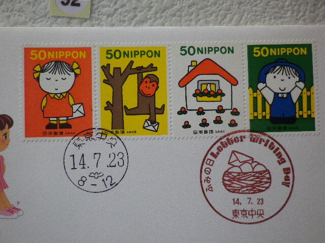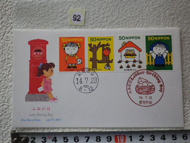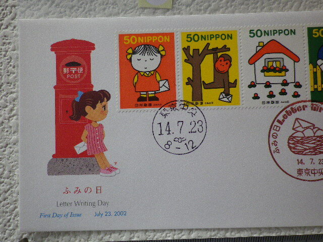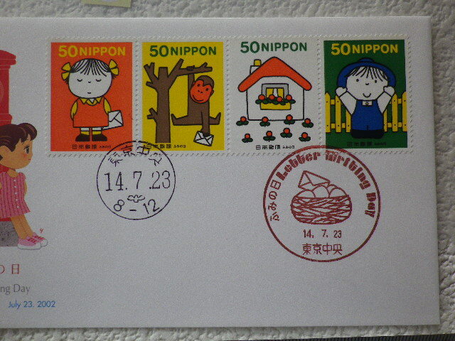 FDC ふみの日 2002年 4貼2消 東京中央印 説明書有●92●同梱大歓迎