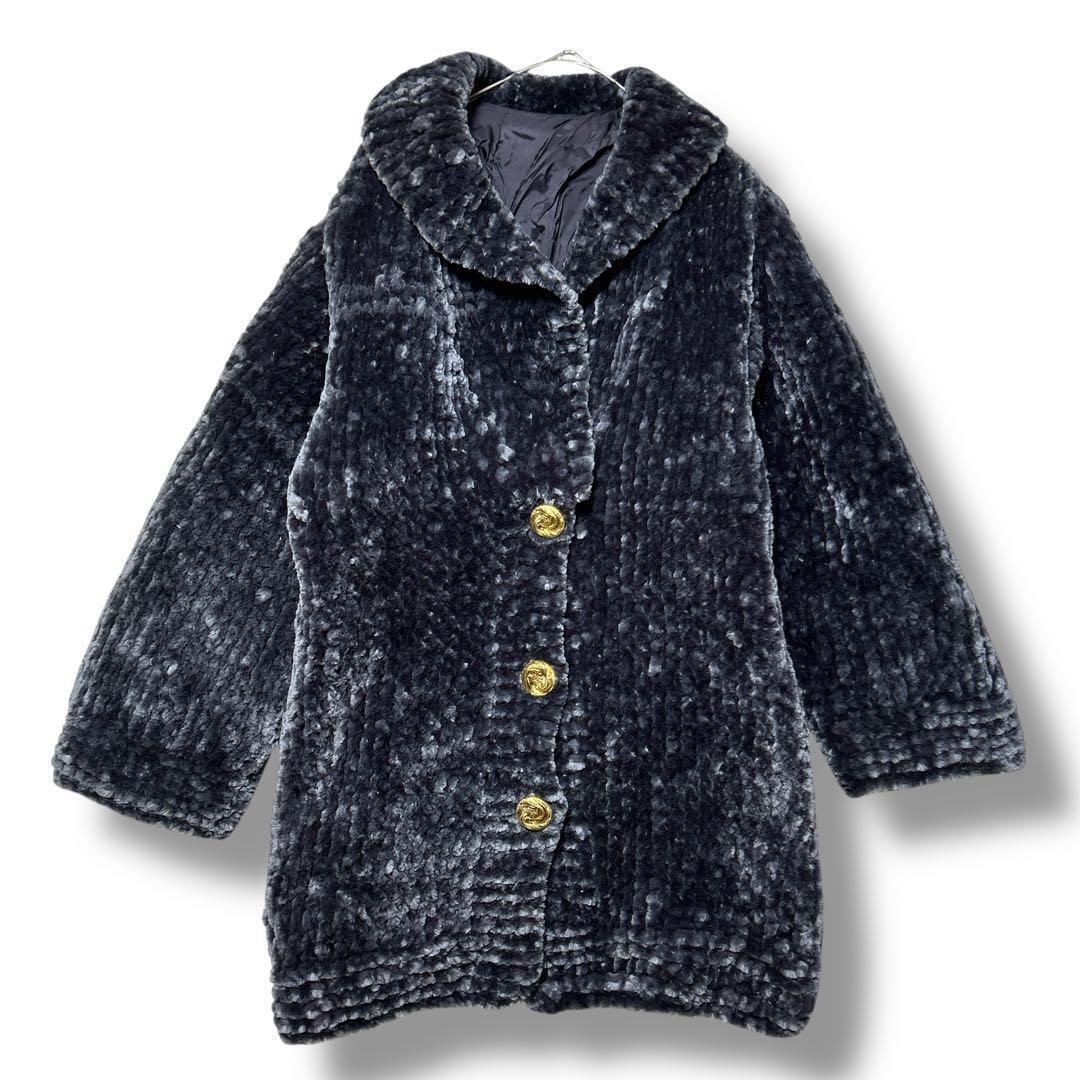 レディース 極厚 ニット ジャケット カーディガン 金ボタン F 濃紺色 ◆ E76F80