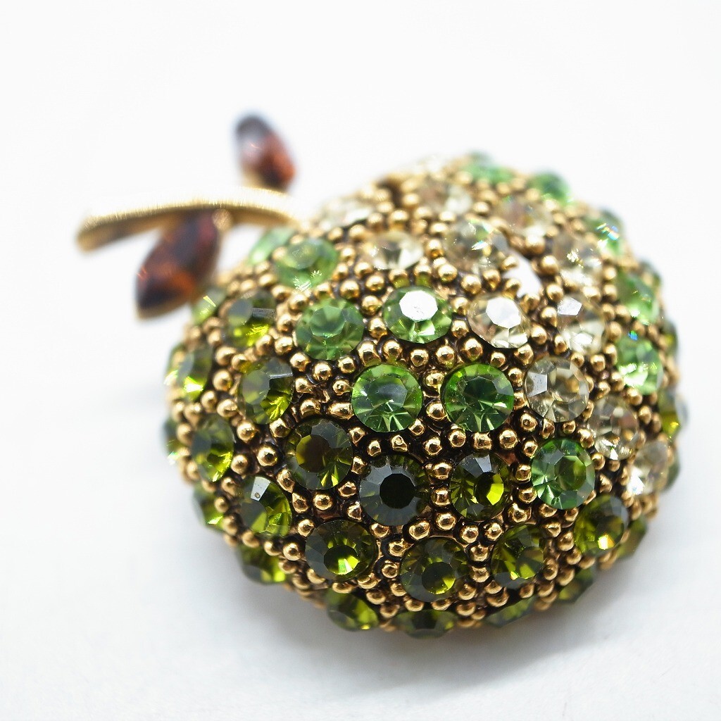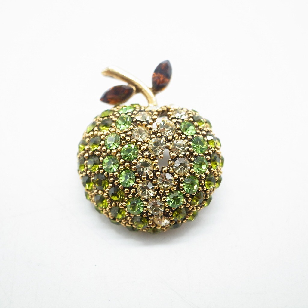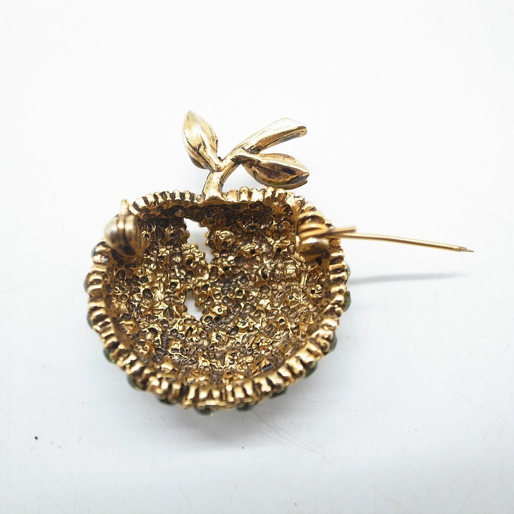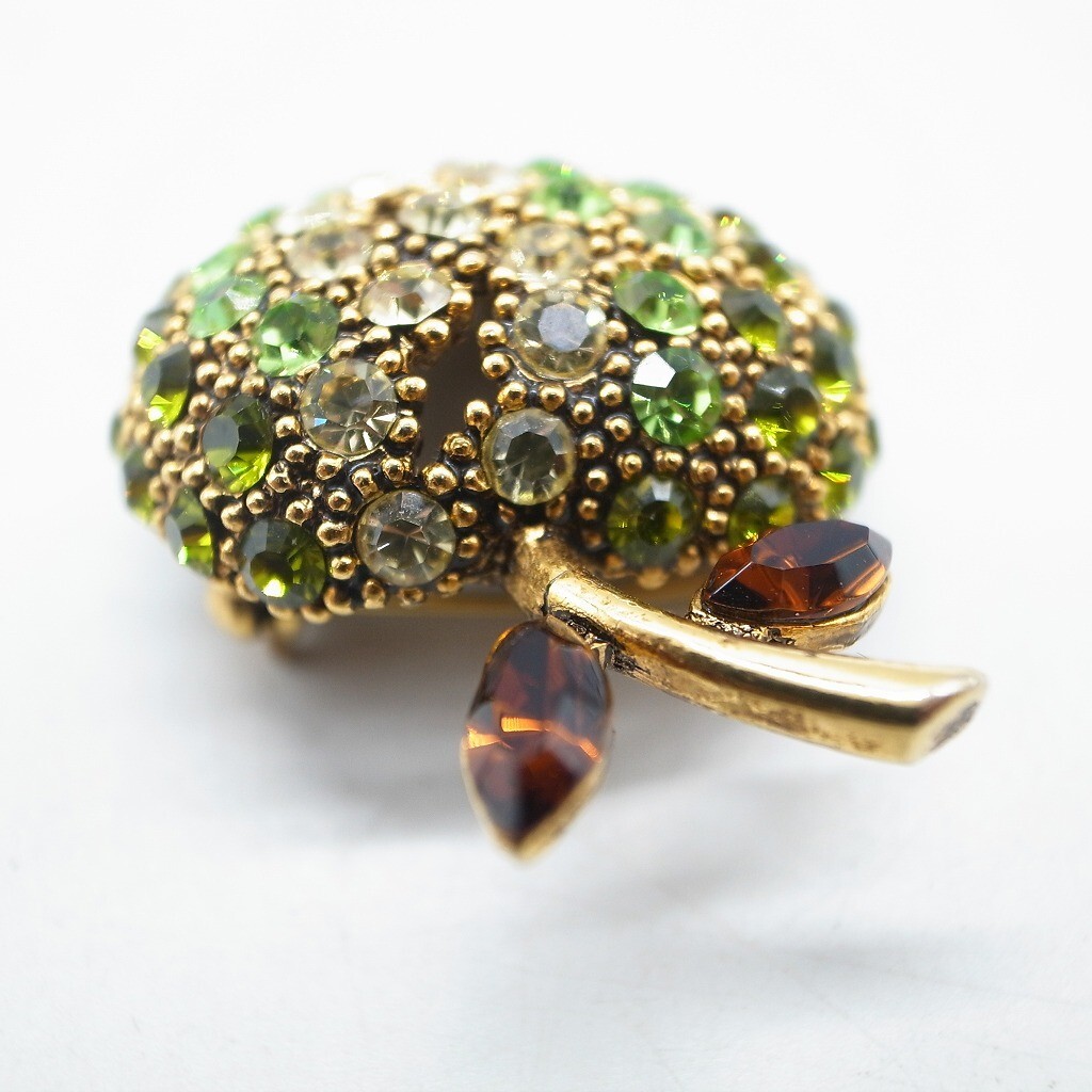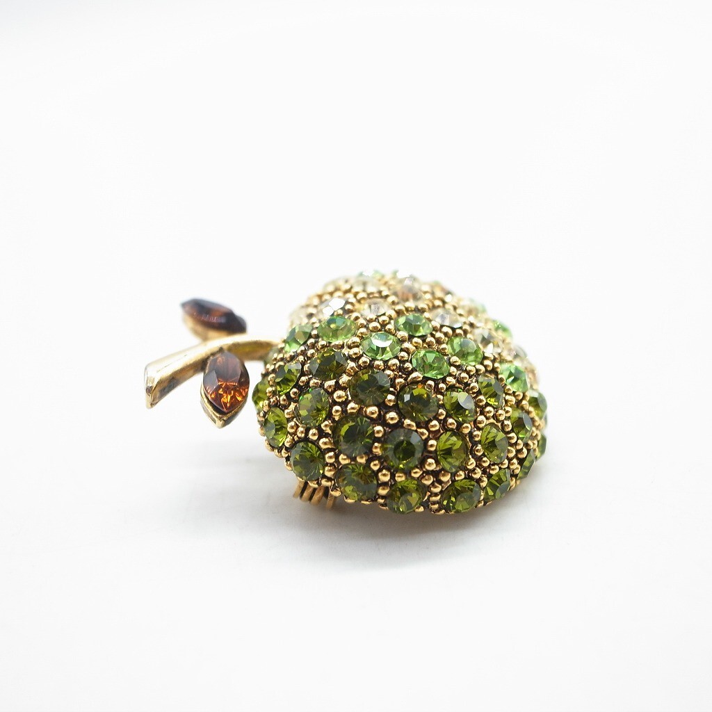 林檎 青林檎 りんご ブローチ ラインストーン ヴィンテージ アクセサリー ゴールドカラー グリーン