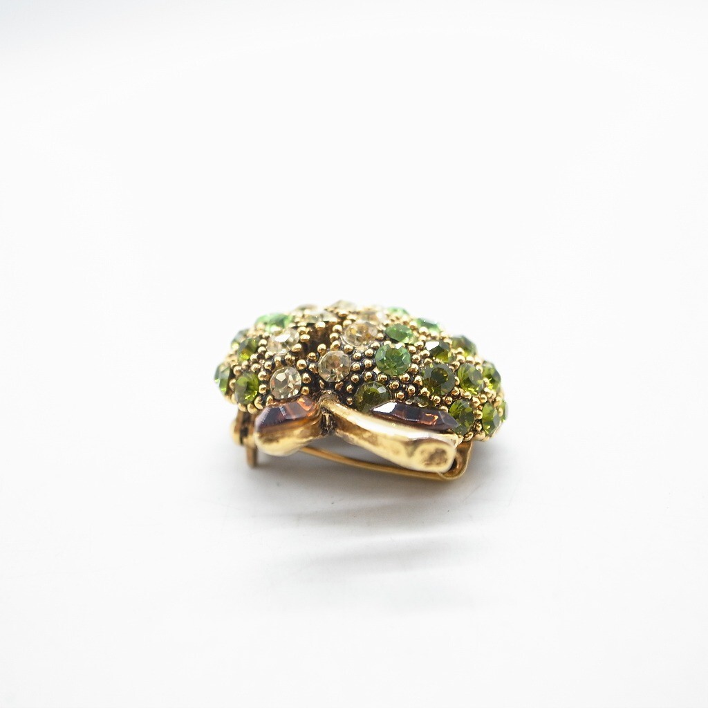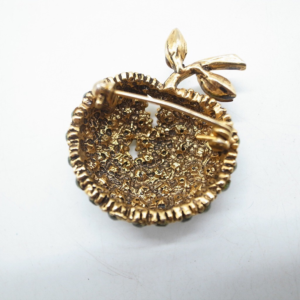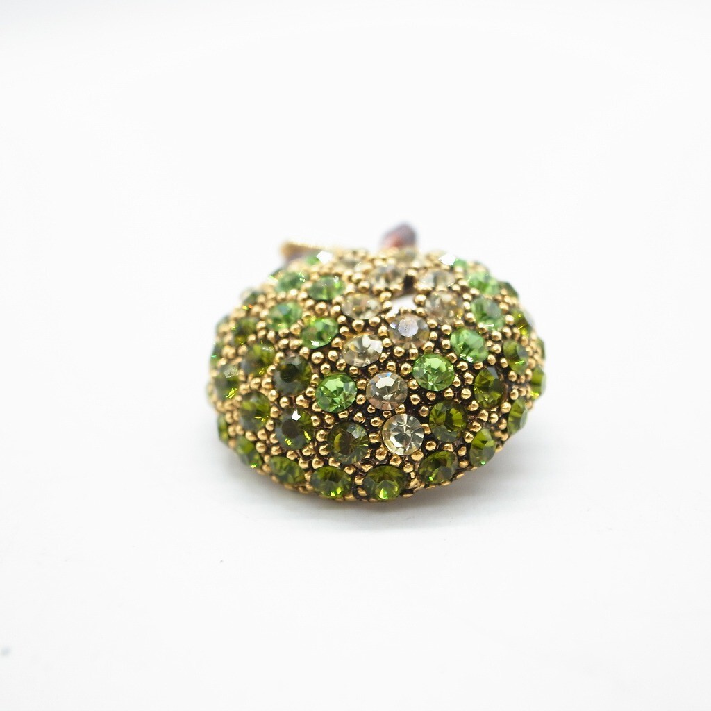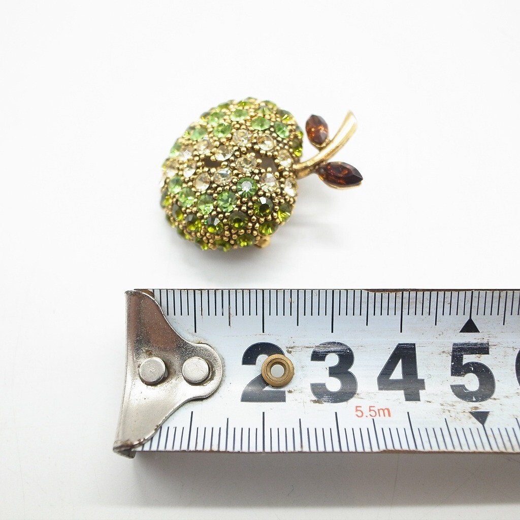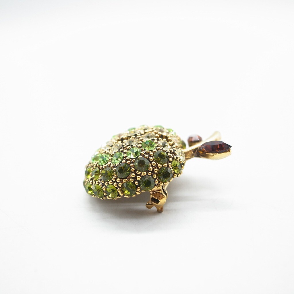 林檎 青林檎 りんご ブローチ ラインストーン ヴィンテージ アクセサリー ゴールドカラー グリーン