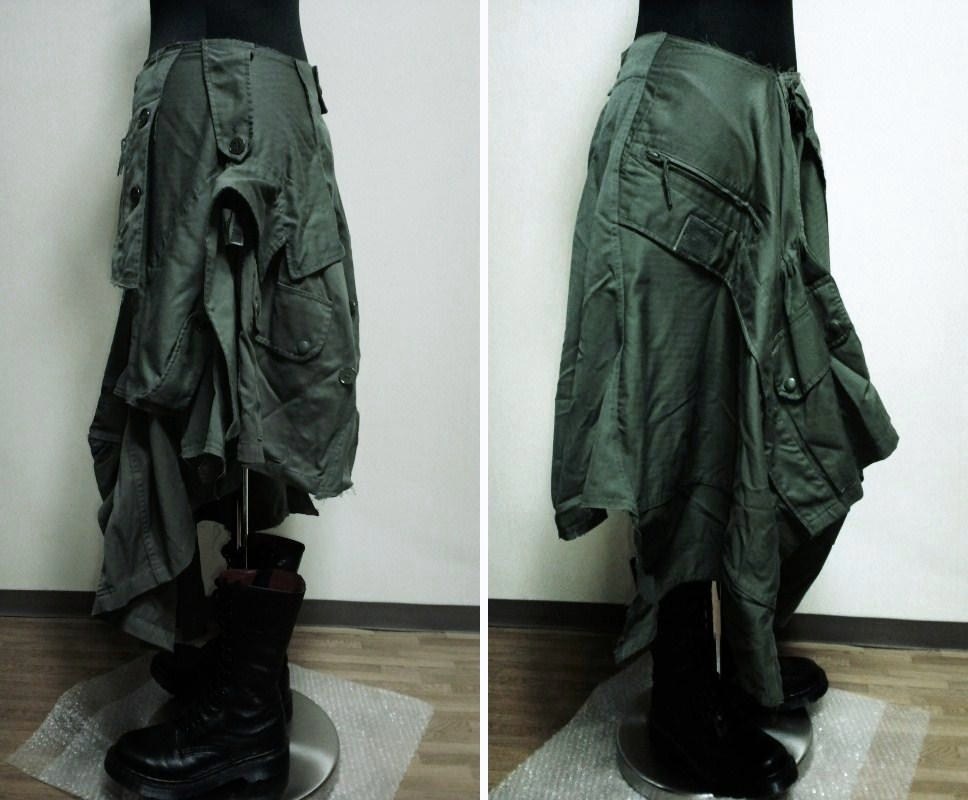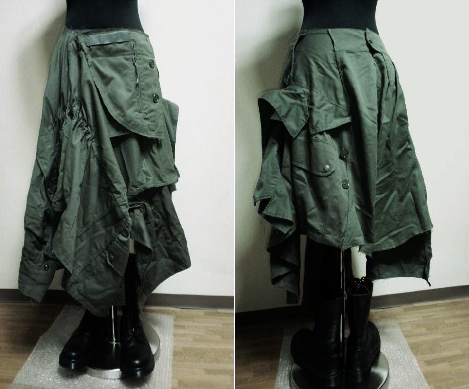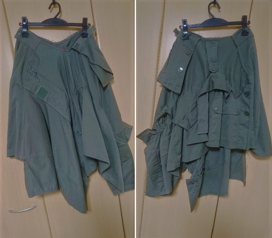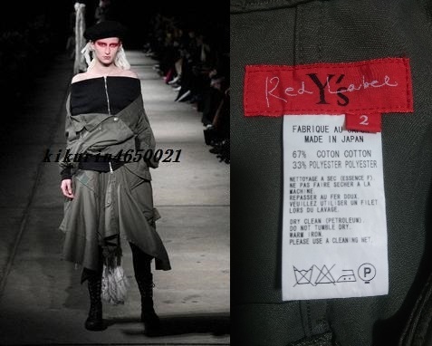 ご覧頂きありがとうございます。ワイズ/レッドレーベルの再構築F-1スカート(短)(委託品)になります。コレクションの一押し商品でデッドストックのF-1ジャケットを解体しスカートに再構築したデザイン性が高く生産数の少ないレアな商品です。スナップ釦が2個ございますのでそちらのどちらかを留めて着用して頂く古着テイストのアシメトリースカートになります。向きが決まっていないのでお好きな向きで着用する事ができます。色はカーキ、素材は綿67%ポリエステル33%、サイズは2、ウエスト35cmか37.5cm、丈47.5~83cm位です。変形デザイン・素人採寸との事をご了承下さい。1回着用の美品かと思いますがユーズドとの事をご理解頂ける方のみご入札願います。ノークレーム、ノーリターンでお願い致します。発送はヤマト運輸になります。ご連絡は2日以内、お支払いは3日以内でお願い致します。なお出品商品と無関係なご質問、画像転用、値引き交渉はご遠慮下さい。