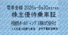 2026年6月30日まで有効の株主優待乗車証6枚×4セットで24枚です。