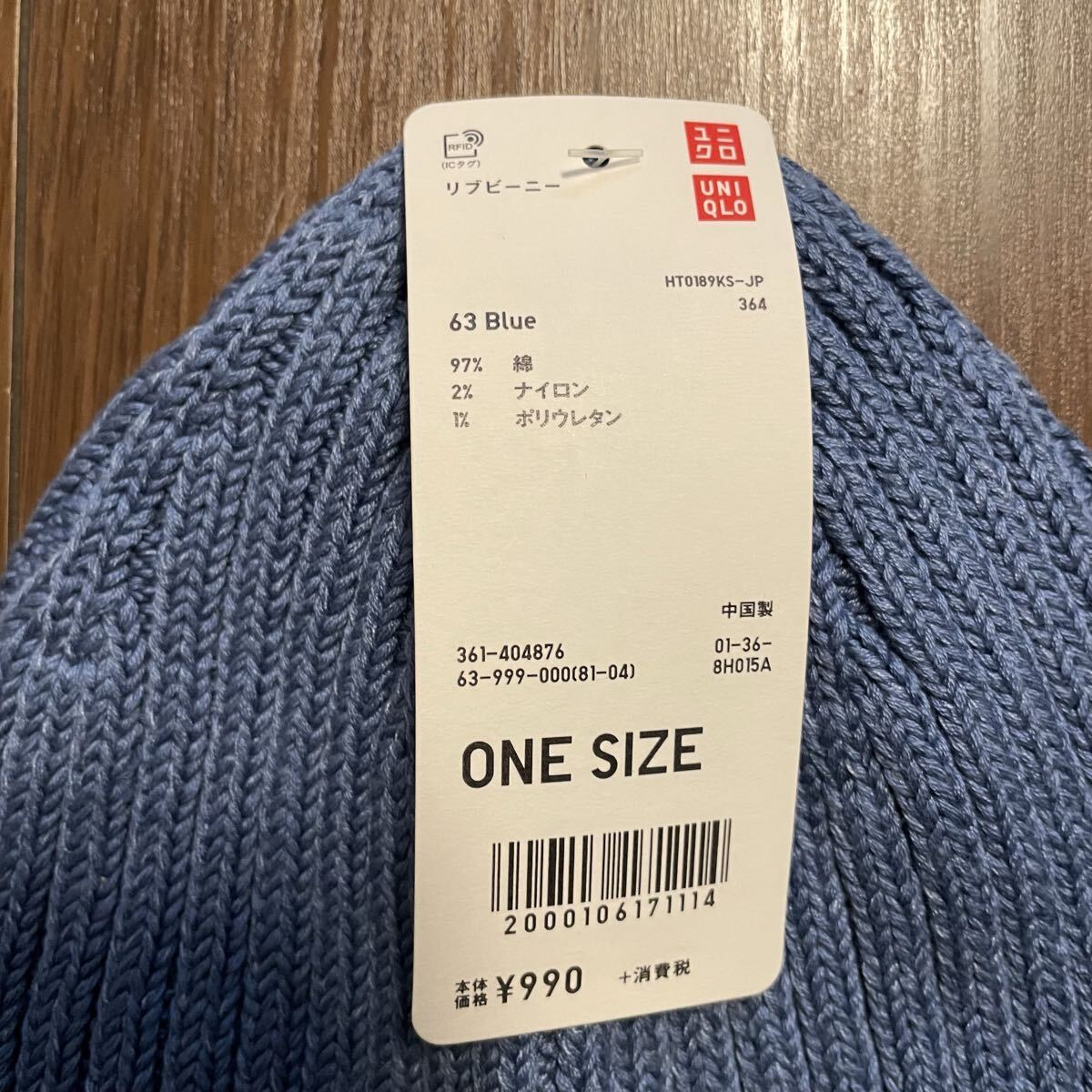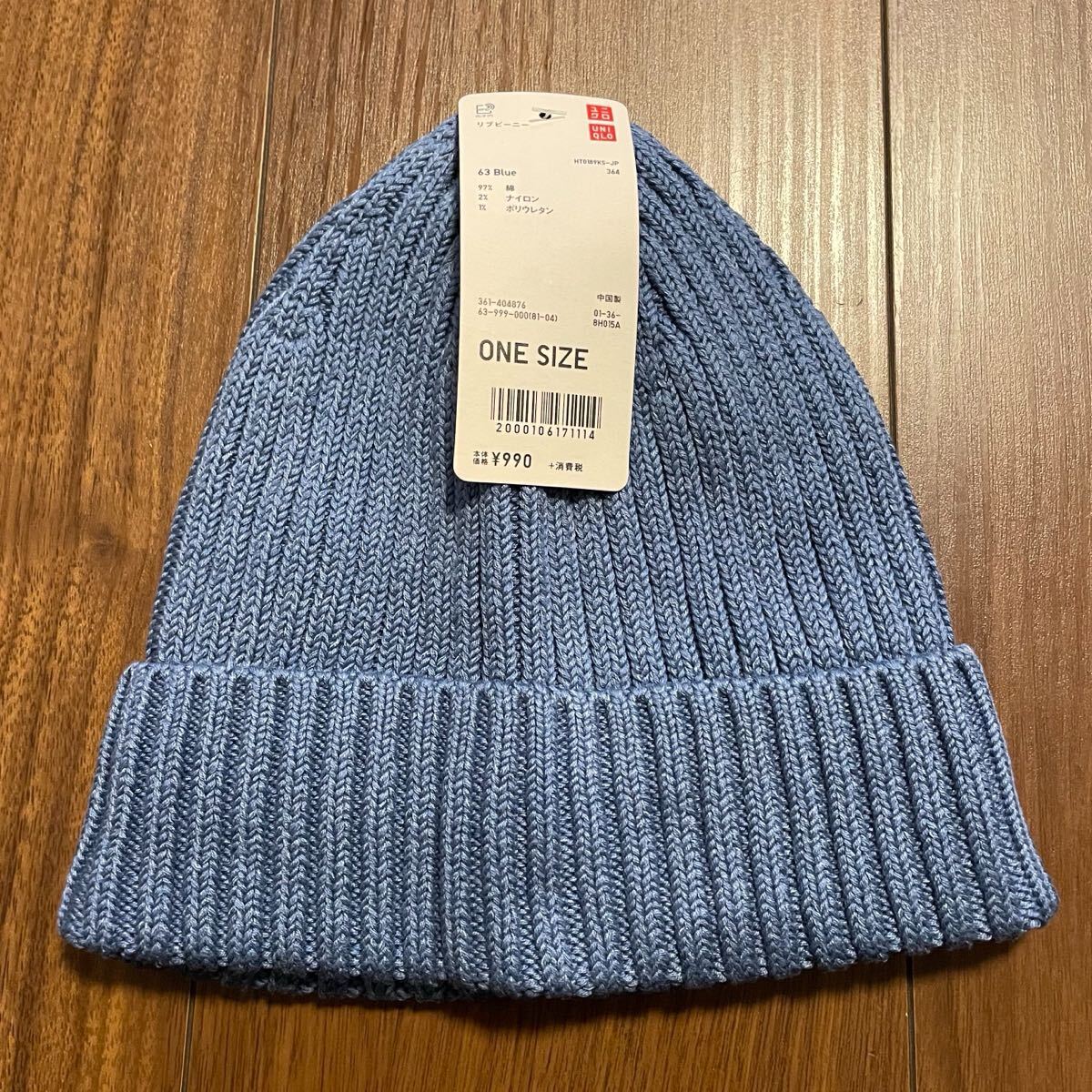 ☆未使用☆UNIQLO ユニクロ☆リブビーニー☆ニット帽 ☆ニットキャップ☆帽子☆ONE SIZE ワンサイズ☆63/Blue/ブルー