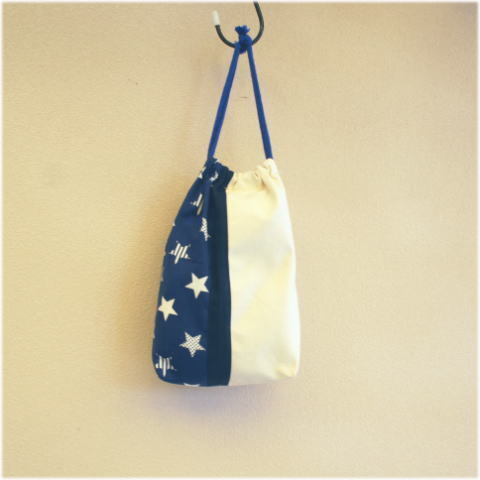 【入学、入園!】450円ネイビースターパッチワーク巾着袋 【手作り小物】