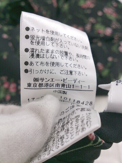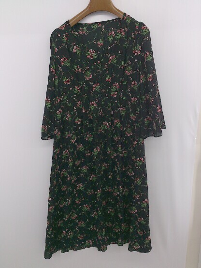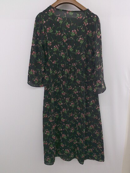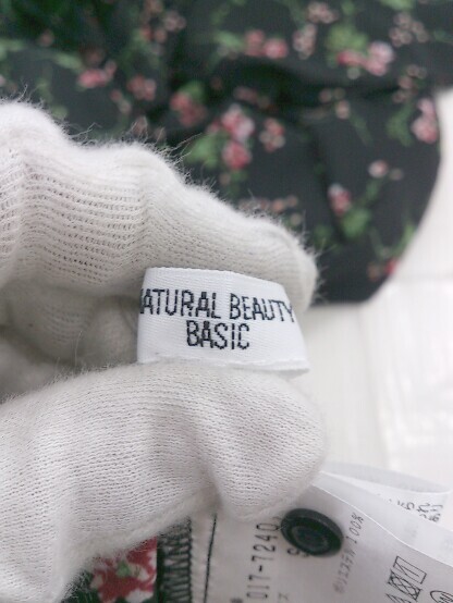 ◇ ◎ NATURAL BEAUTY BASIC 花柄 シアー 七分袖 膝下丈 ワンピース サイズS ブラック レッド グリーン系 レディース E