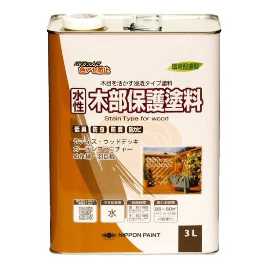 ウッドデッキ・ラティス(木製フェンス)・板塀・戸袋・羽目板・ぬれ縁などの屋外の木部・木製品にお使いいただけます。 |