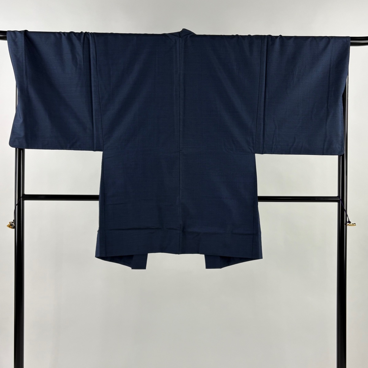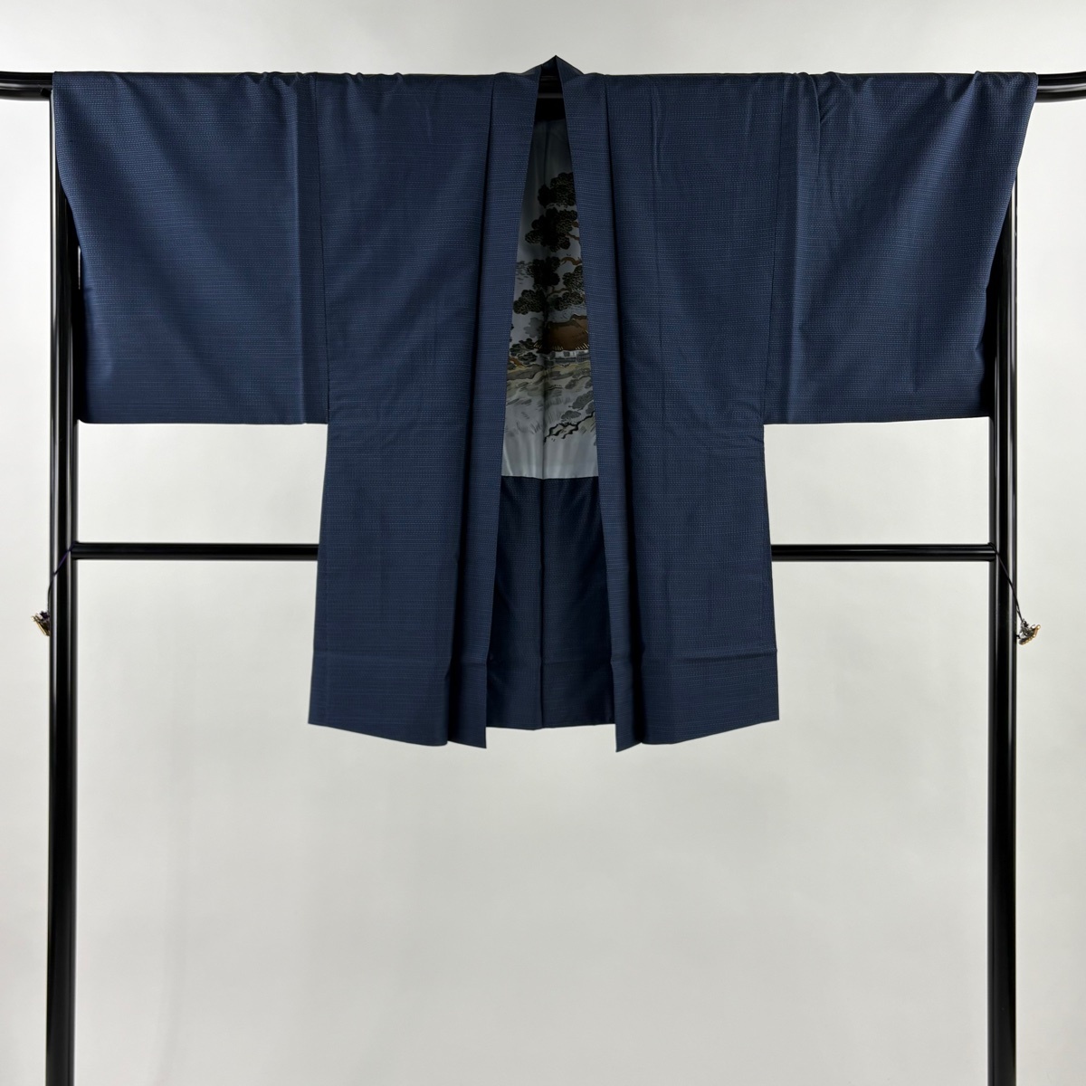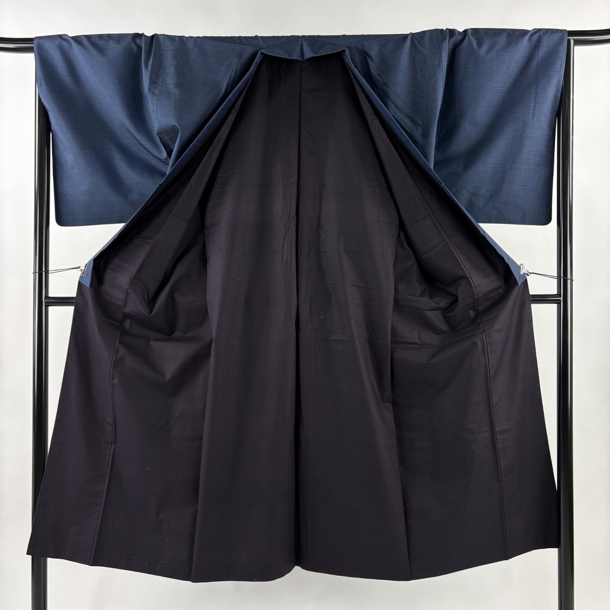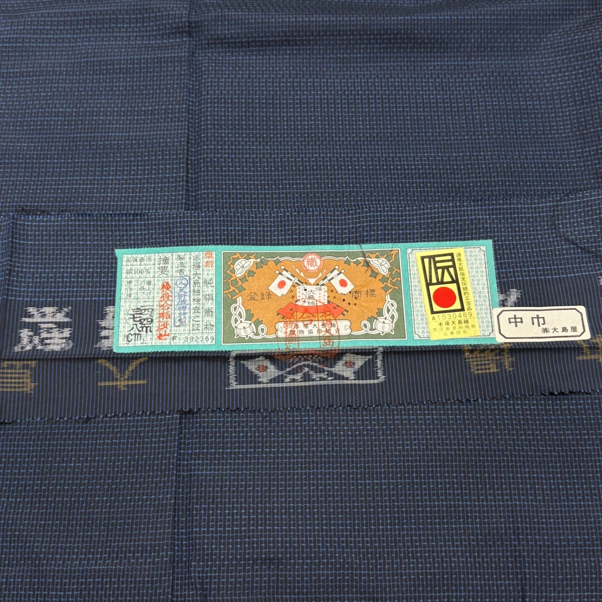 | 男着物 美品 秀品 アンサンブル 大島紬地 幾何学 紺色 袷 身丈140 裄丈69.5 S 正絹 【中古】 |