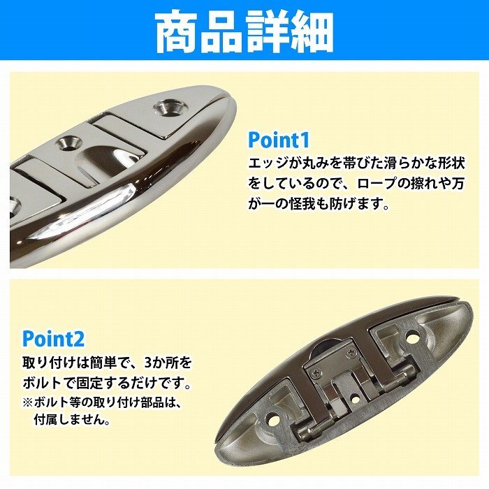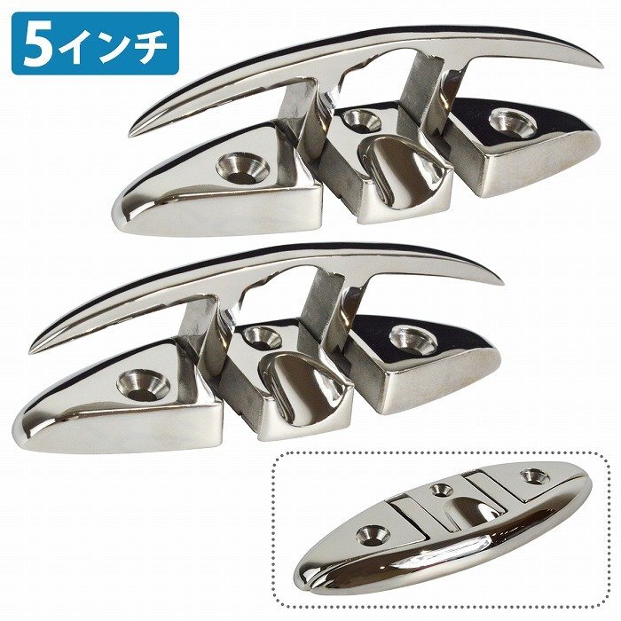 【送料無料】2個セット 折りたたみ式 フラット クリート 5インチ 127mm 316 ステンレス製 船 ボート カヤック マリン 係留 フリップアップ