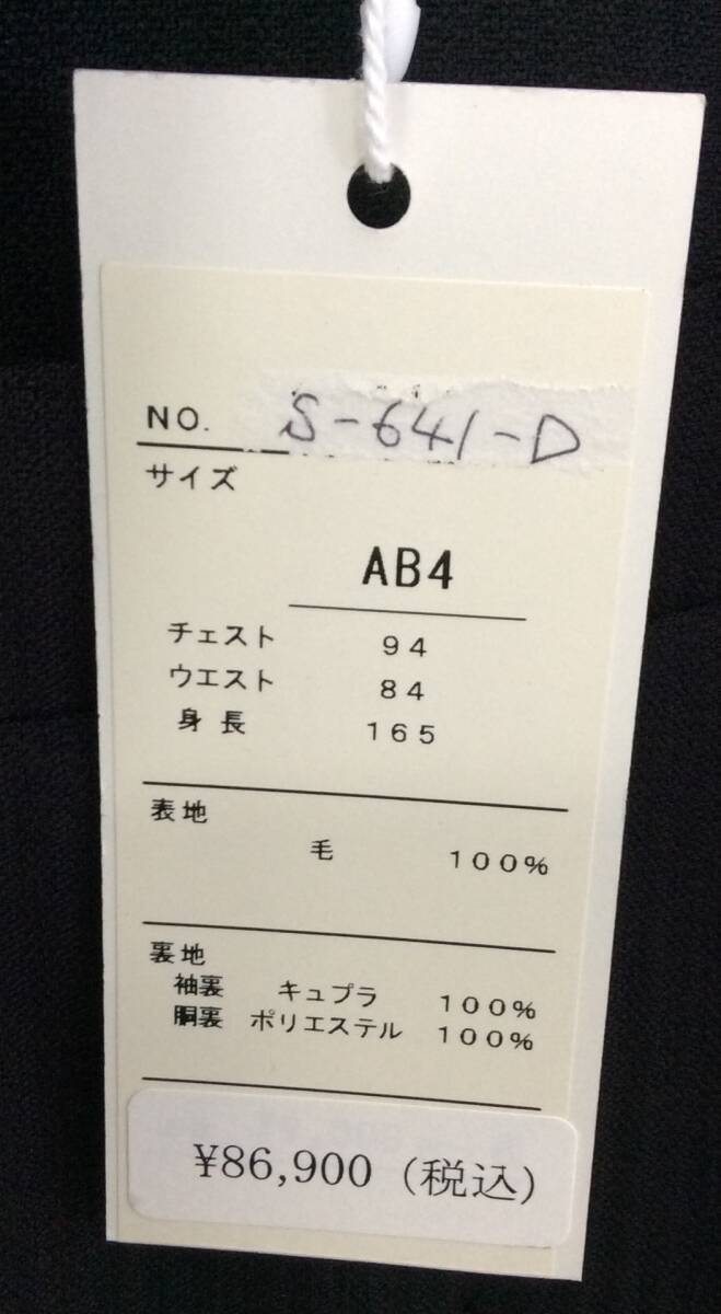 定価8.6万 新品 未使用 イタリア製 ANGELICO 2ボタン シングル スーツ AB4 ウール 毛 100% サイドベンツ 黒 ブラック 冬物 冬 77-1