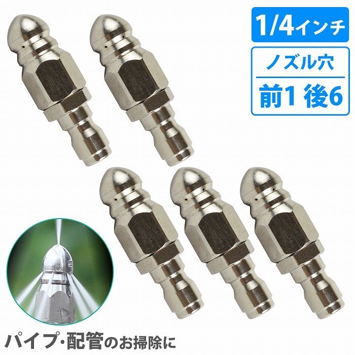 【送料250円】5個 逆噴射ノズル 高圧洗浄機 1/4インチ 下水管 掃除 詰まり 除去 洗浄 ジェット ノズル 下水 排水管 シンク ケルヒャー 互換