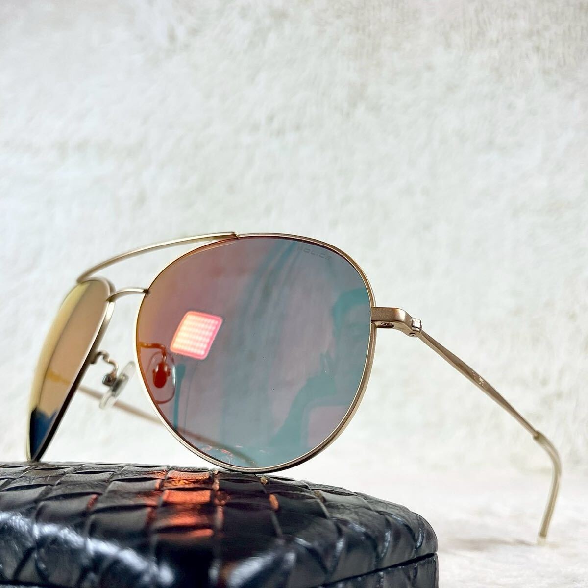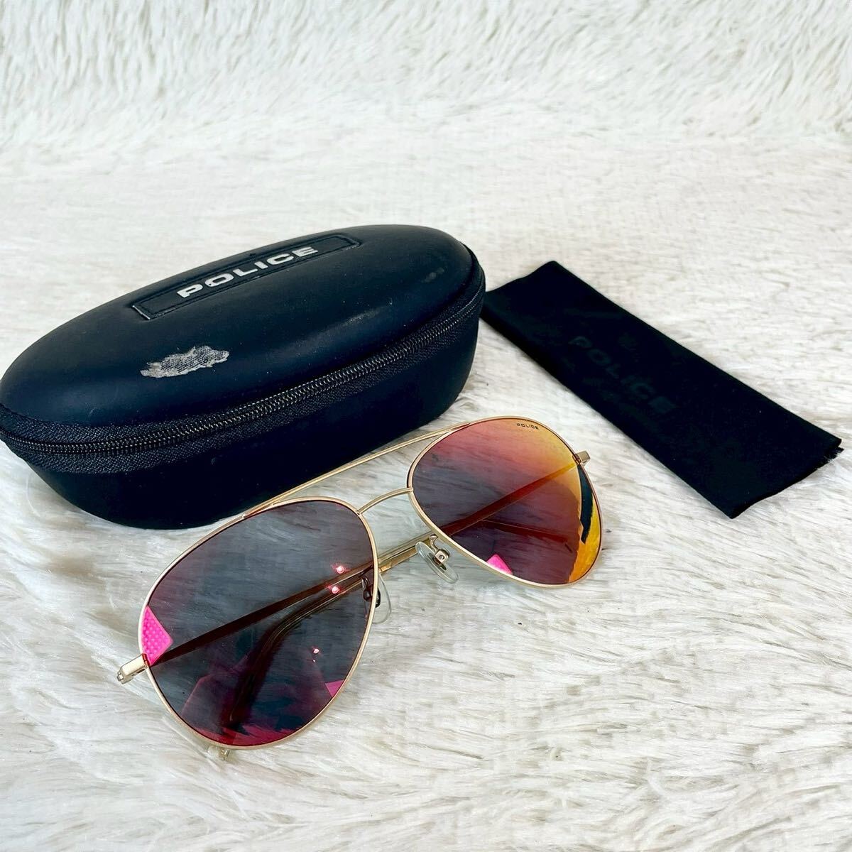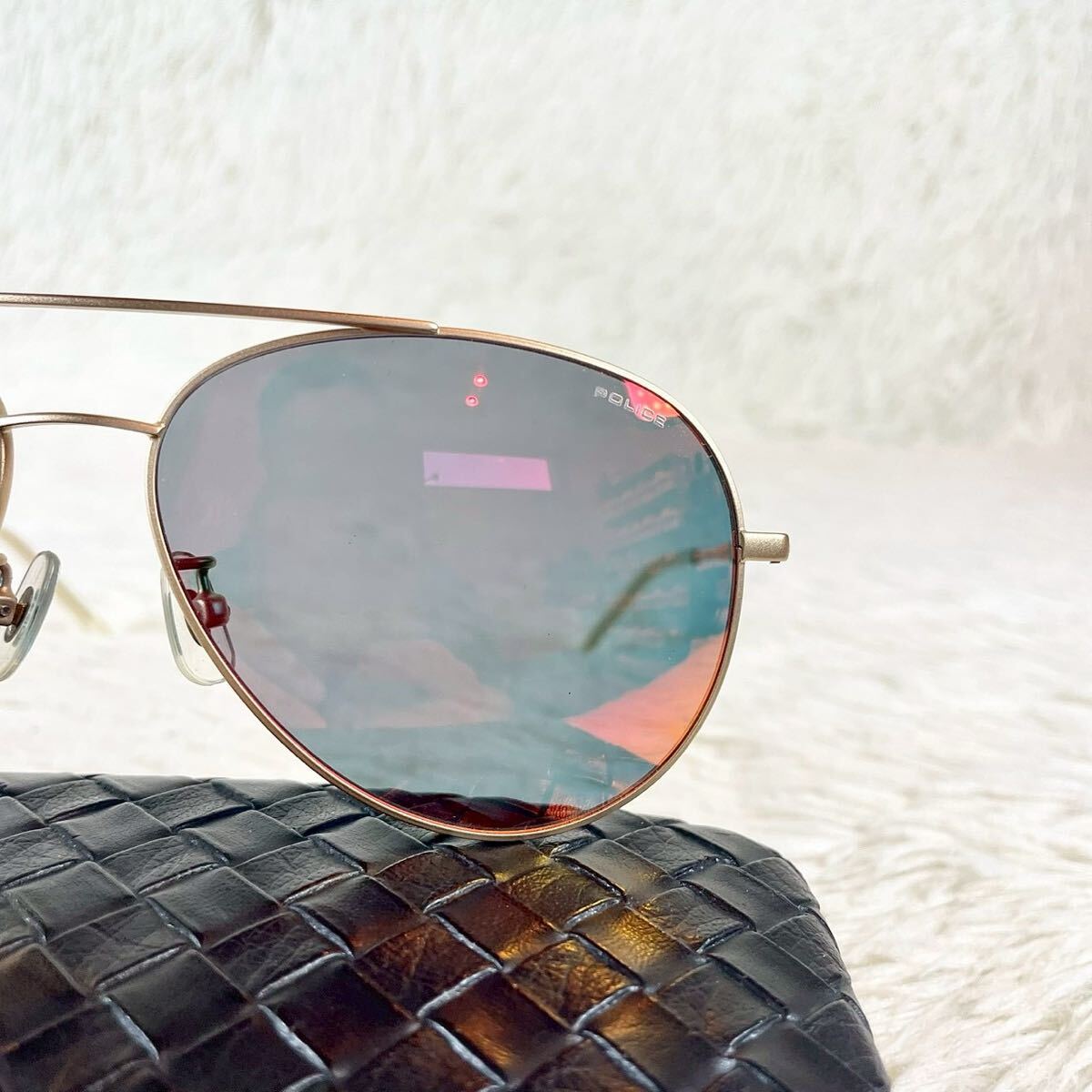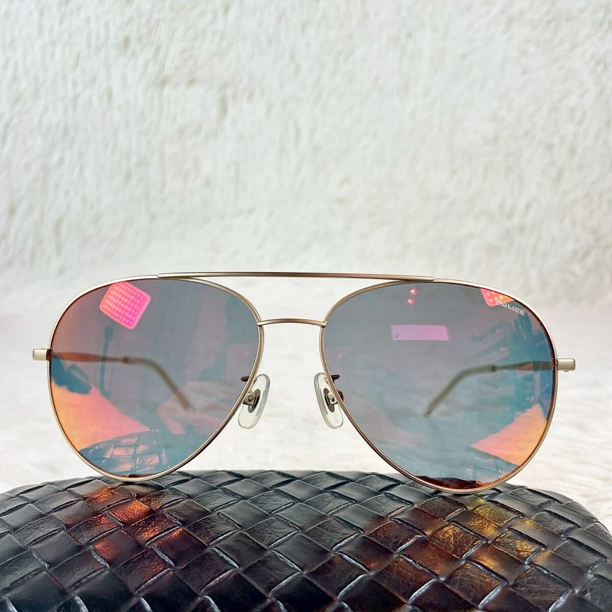 極美品 POLICE ポリス サングラス S8682J ミラーブラックレンズ ツーブリッジ ゴールドフレーム