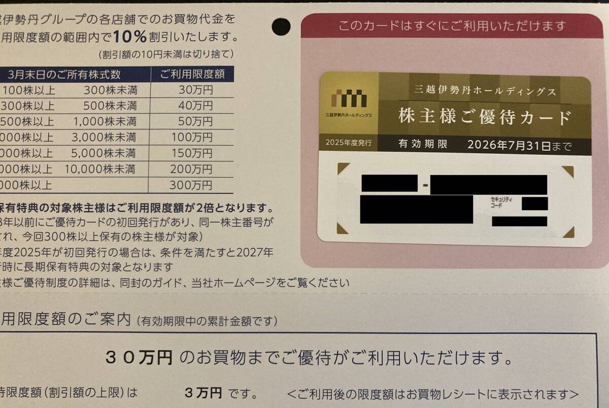 三越伊勢丹ホールディングスの株主優待カード(お買い物限度額30万円)の出品です。