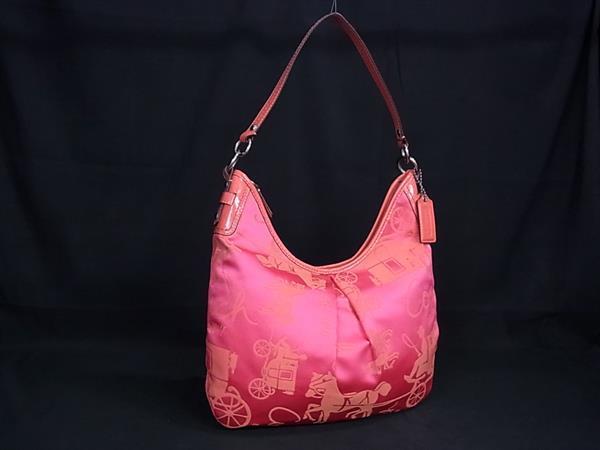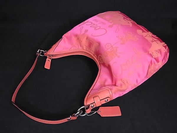 1円 ■美品■ COACH コーチ F14480 キャンバス×パテントレザー 総柄 ワンショルダーバッグ 肩掛け レディース ピンク系 FU2756