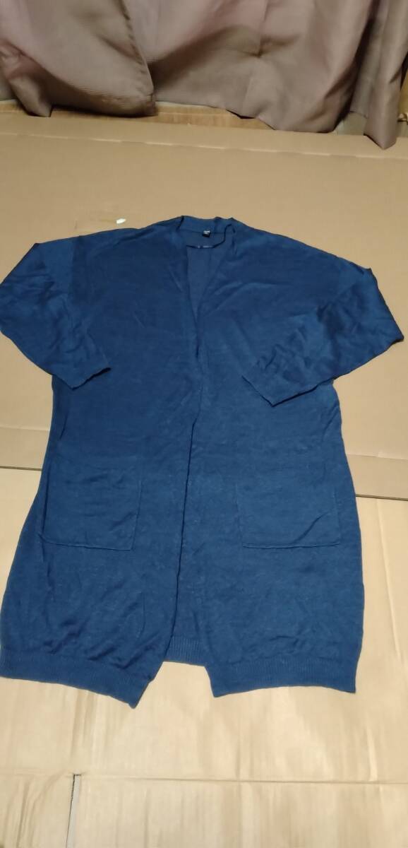 UNIQLO ユニクロ レディース リネン ブレンド ロングカーディガン ブルー ネイビー系 M 251-404016