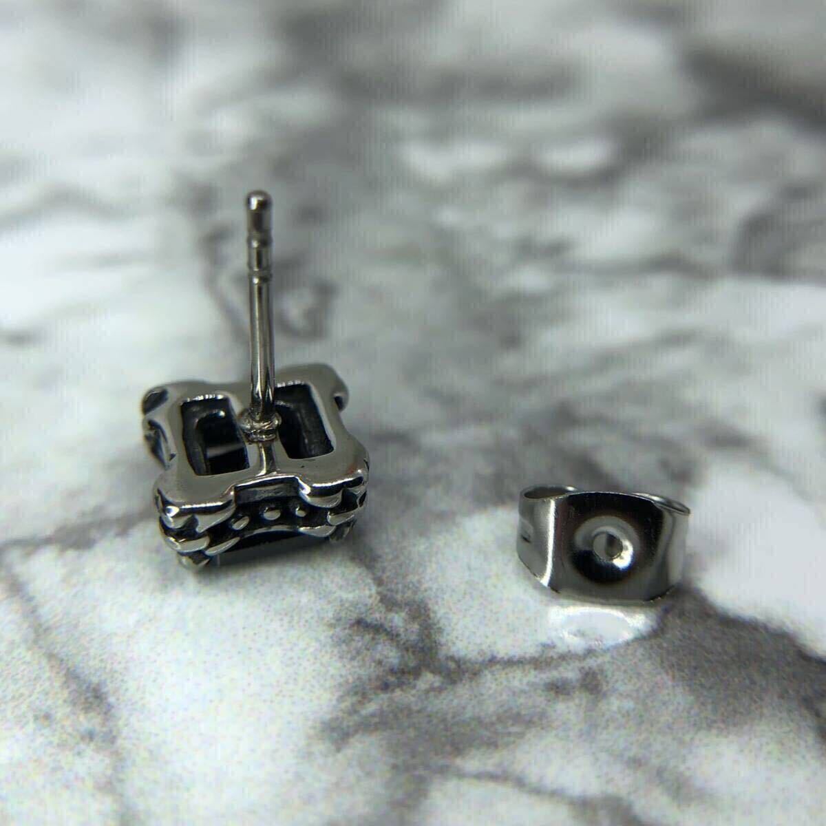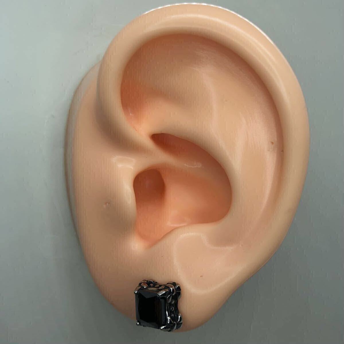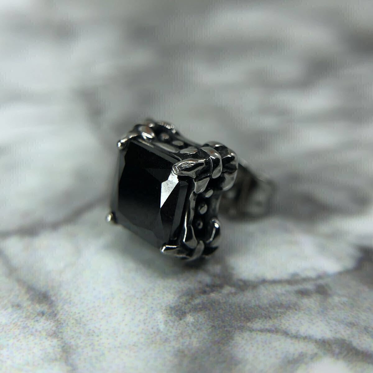【新品】スタッド ピアス 18g 爪 スクエア 四角 ブラック ジルコニア ダイア シルバー アクセサリー 韓国 メンズ タガー 片耳用