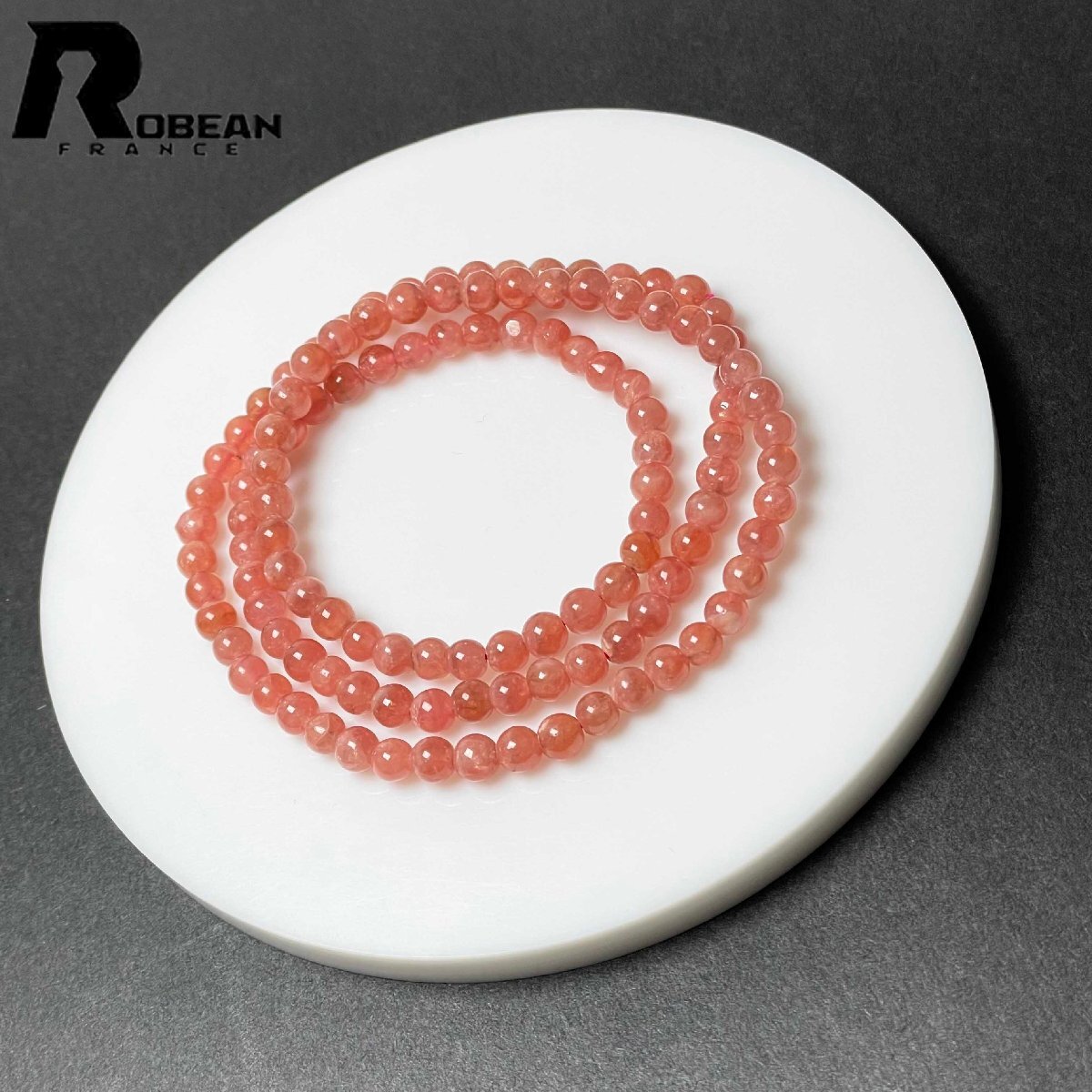 【限定1個】綺麗 EU製 定価10万円★ROBEAN・インカローズ★3本巻きブレス パワーストーン 原石 天然石 高級 ギフト プレゼント バラ色 約4.8-5.2mm