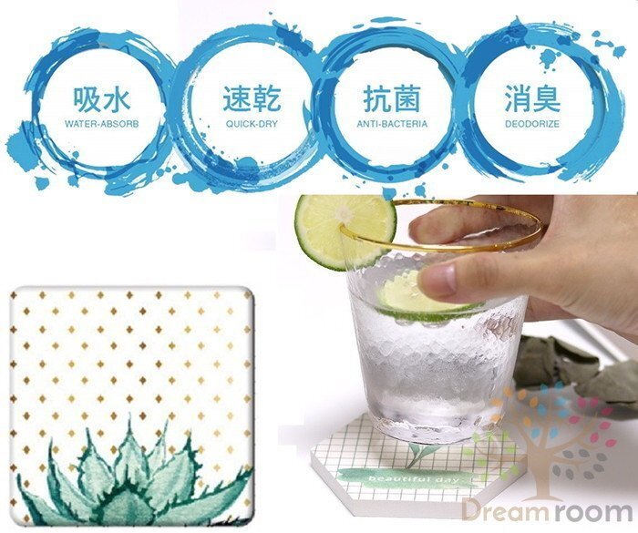 055-05 吸水力抜群 速乾性 珪藻土 かわいい コースター 正方形 サボテン 速乾 水滴を素早く吸収☆