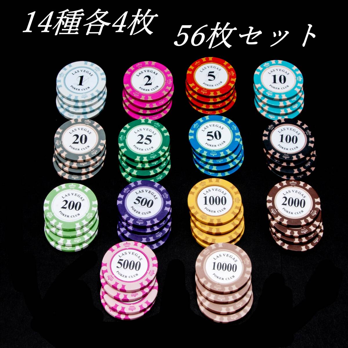ポーカーチップ(ゴルフマーカー) 14種各4枚 合計56枚セット クレイ 鉄片入り(中側)チップ マーカー(ゴルフ用品) 新品 未使用品