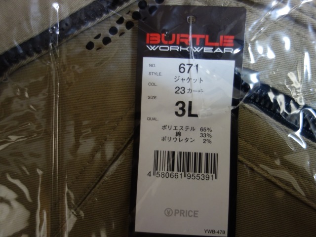 バートル 671★3L カーキ★ストレッチツイル ジャケット★BURTLE
