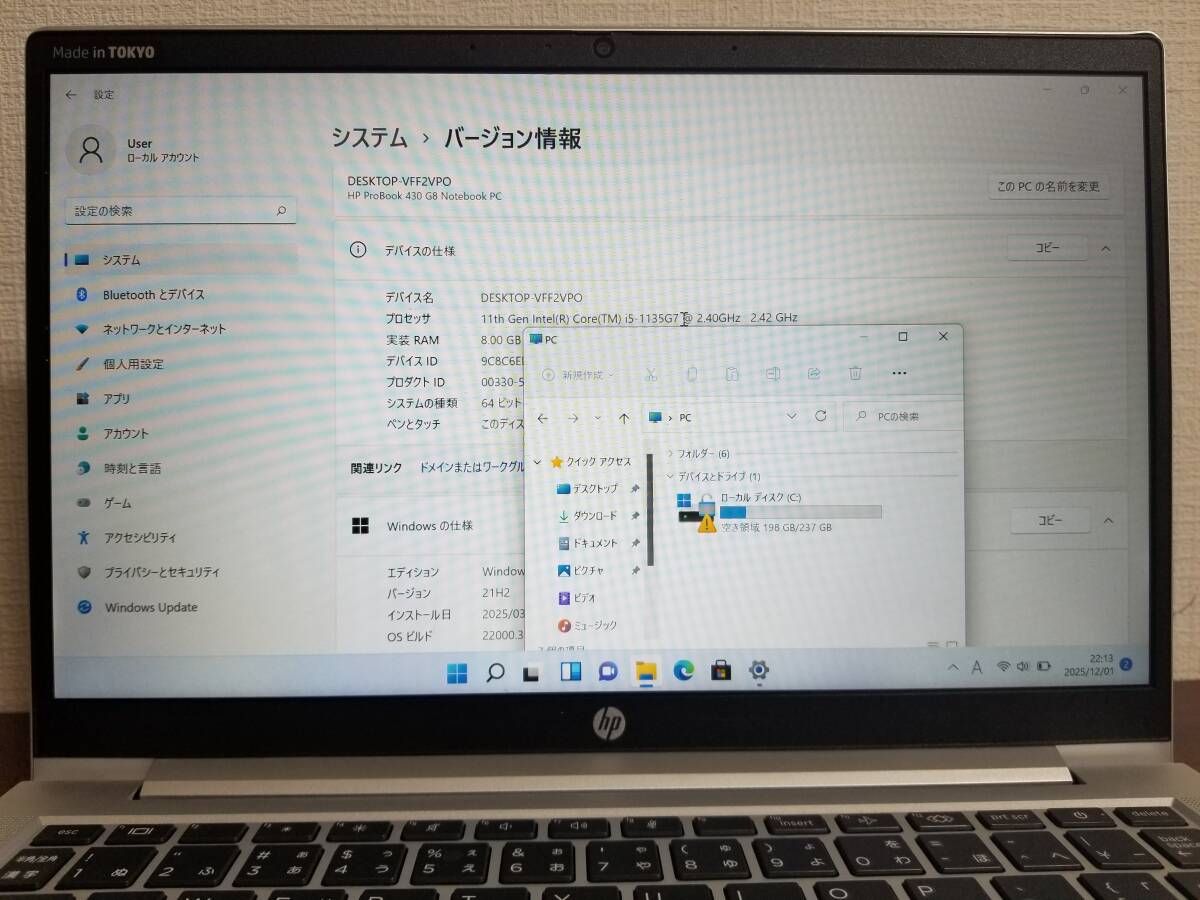 T87 良品  HP ProBook 430 G8 Core i5 第11世代 (1135G7)◆RAM8GB◆M.2 SSD256GB ◆13.3インチ Full HD Win11 PC laptop Office 2021ノートパソコン