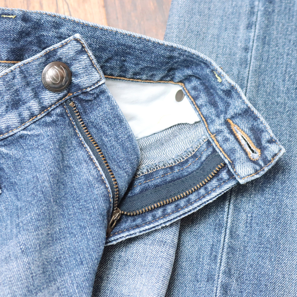 ベーシックなルックスでありながら、ラインの美しさが際立つシルエットは合わせるトップスを選ばず、長く愛用できる一本に仕上がっています。カジュアルスタイルを上品に格上げし、都会的なムードをさりげなく演出する、ワードローブの定番として活躍するデニムです。