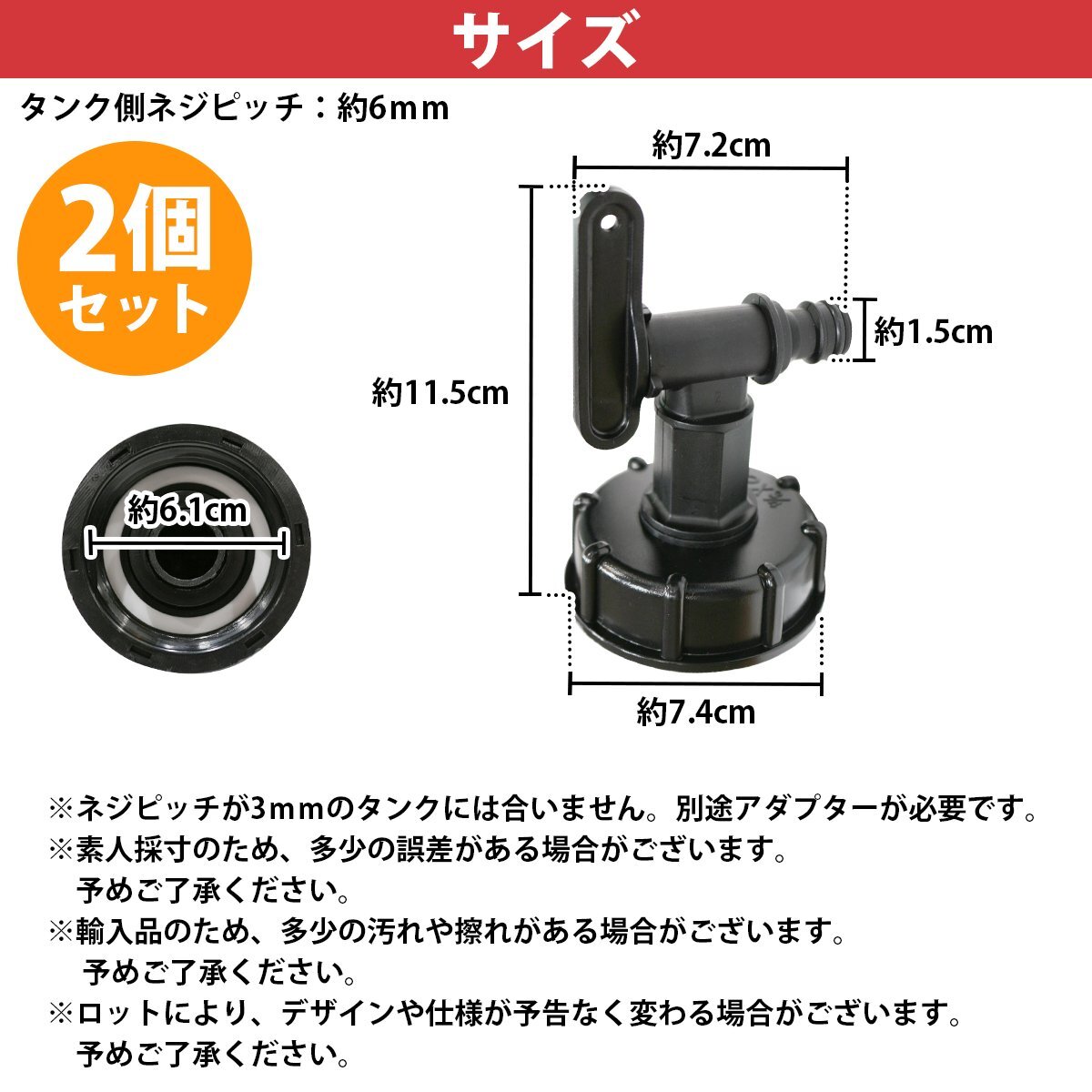 商 品 説 明IBCタンクの流出口にとりつける「プラスチック蛇口」2個セットです。