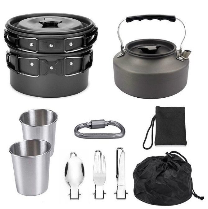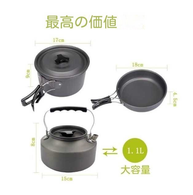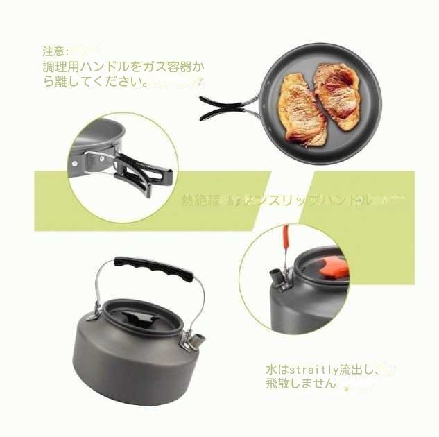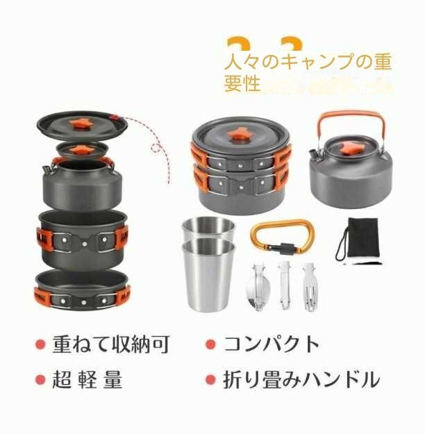 新品です クッカーセット調理器具 軽量 鍋 ケトル キャンピング 10点セット 収納袋付き アウトドア (A68)