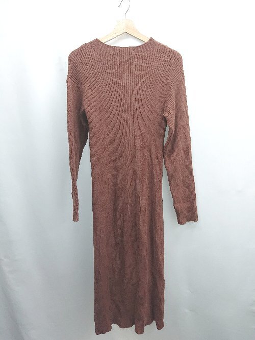 ◇ ⊇ mistywoman ミスティーウーマン リブニット 長袖 ロング リブロングワンピース サイズF ブラウン系 レディース E