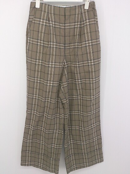 ◇ MOUSSY マウジー チェック ハイウエスト ワイド パンツ サイズ1 ブラウン ブラック ホワイト系 レディース E