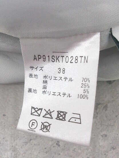 ◇ nano universe Aperi ナノユニバース 膝下丈 台形 スカート 38 ブルー ホワイト * 1002799461993