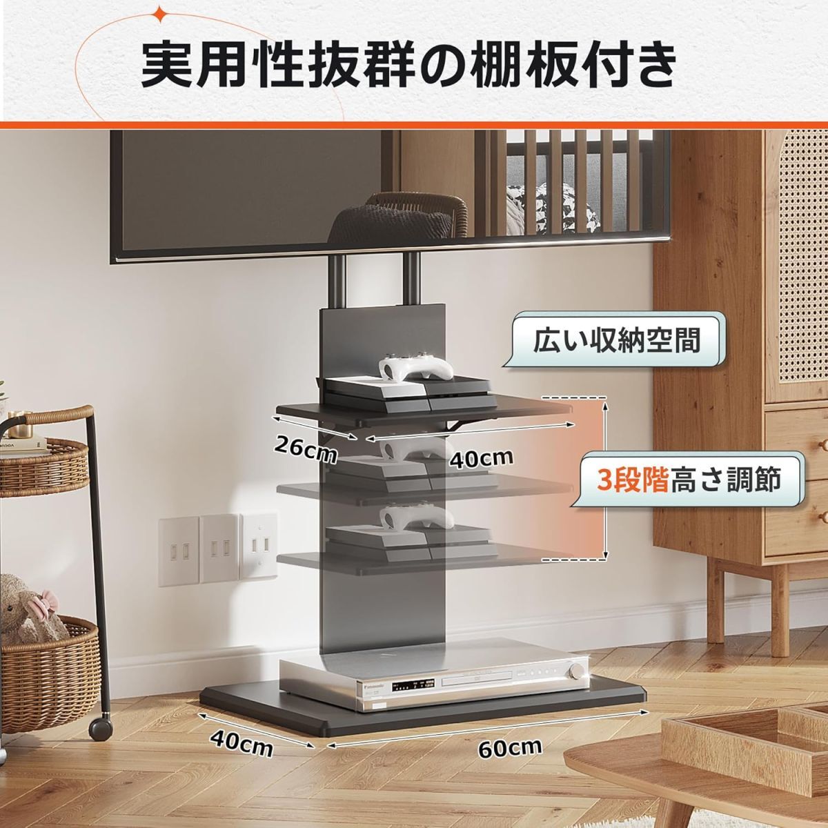 • 「移動式・固定式兼備」キャスターとステップを兼備して、あなたの必要に応じて選択してください。移動キャスター付きで、お掃除や模様替えの際に便利です。ステップを付きで、テレビスタンドは固定されて、大きなテレビでも安心して設置できる耐荷重設計です。安定性を求めて、転倒防止ワイヤー付きでお客様は安心してください。