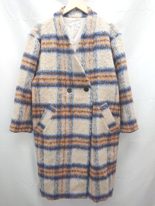 ◇ FENNEL チェック柄 起毛 ダブルボタン 長袖 コート サイズ9号 ブラウン系 レディース E