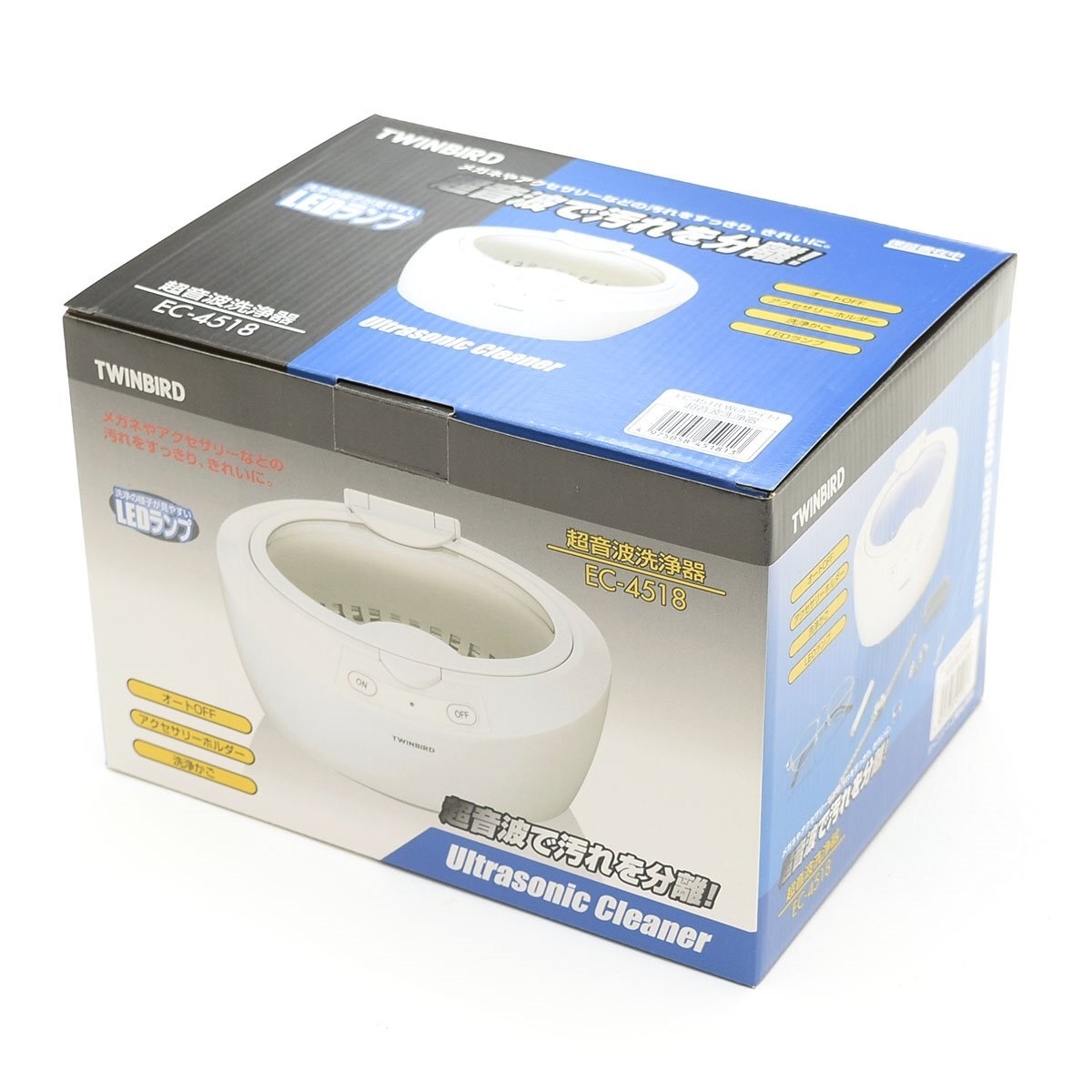 ▽563818 未使用品 TWINBIRD ツインバード 超音波洗浄器 EC-4518 ホワイト メガネ 貴金属 アクセサリー
