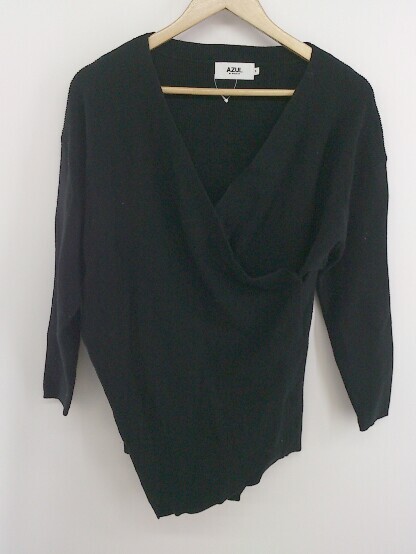 ◇ AZUL BY MOUSSY アズールバイマウジー カシュクール 長袖 ニット プルオーバー サイズS ブラック レディース E