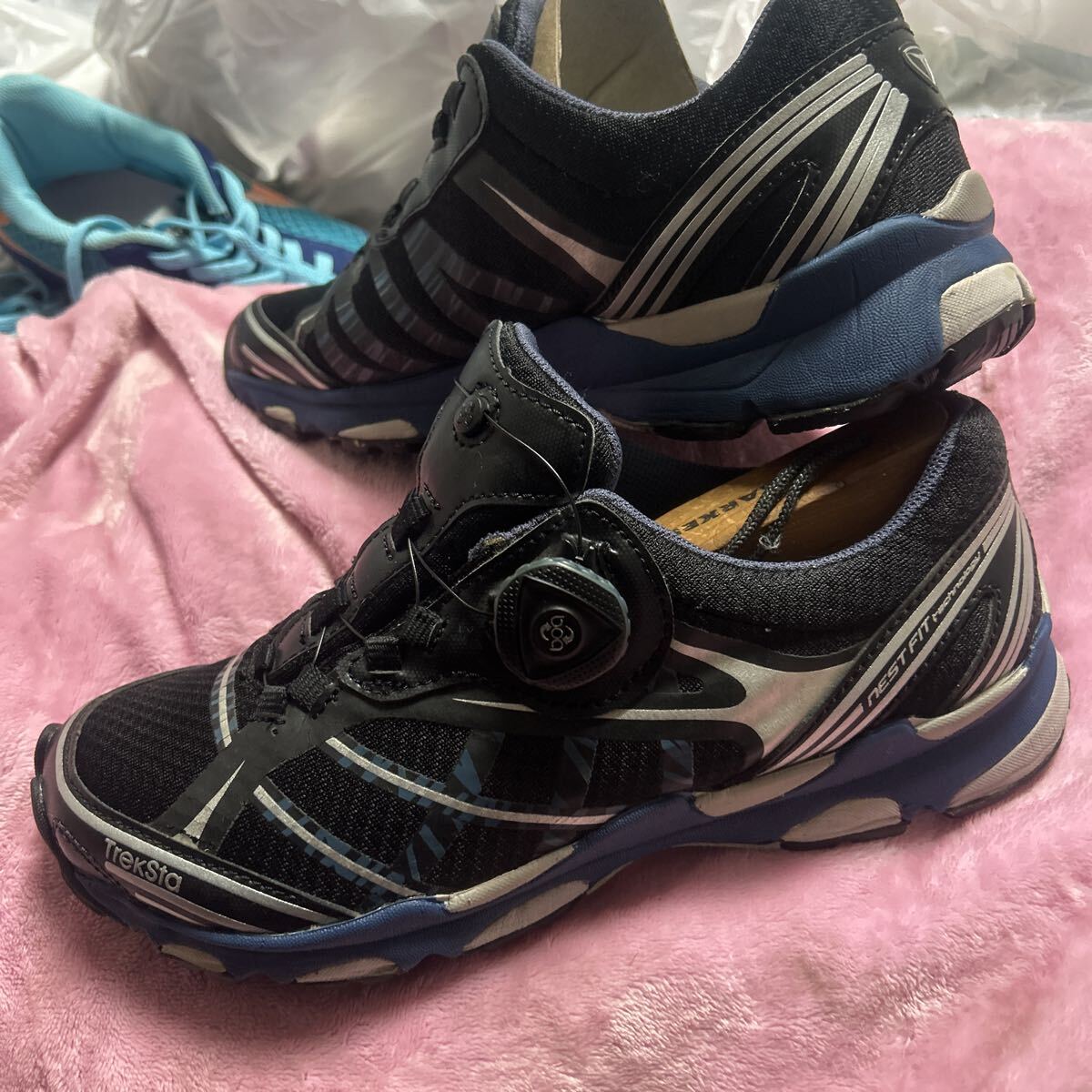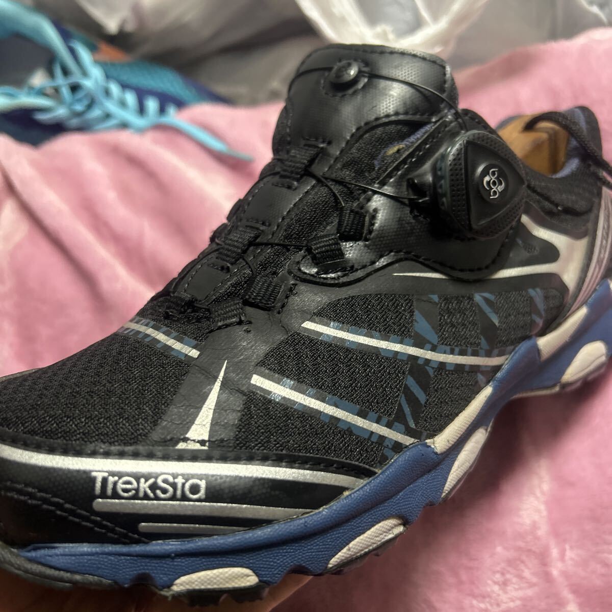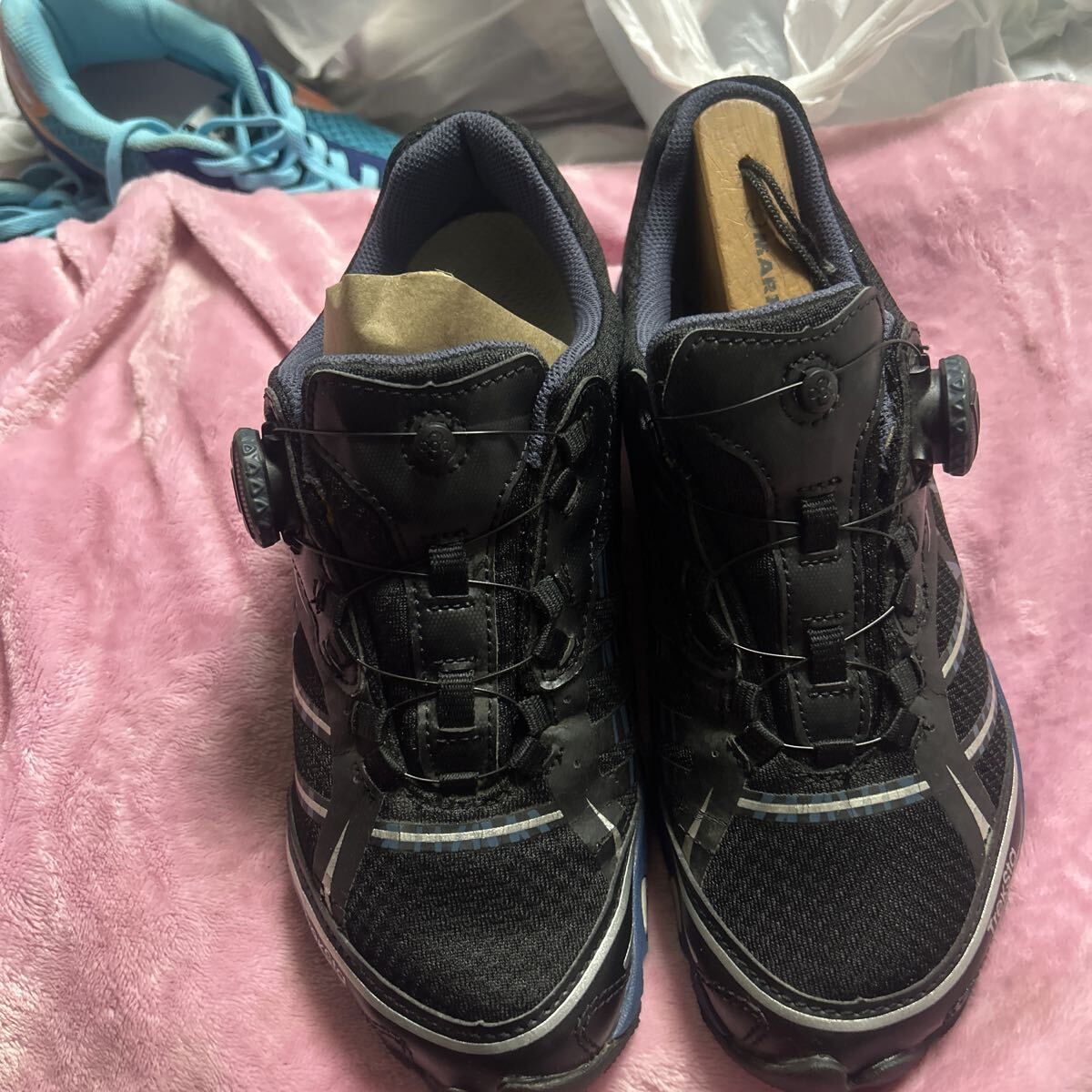 普段履きとして4〜5回着用して自宅保管してありました。美品です♪軽量でクッション性抜群!脱ぎ履きしやすいBOAクロージャーシステム搭載のトレランシューズです♪発送はレターパックで全国600円にて。激安の千円スタートです♪