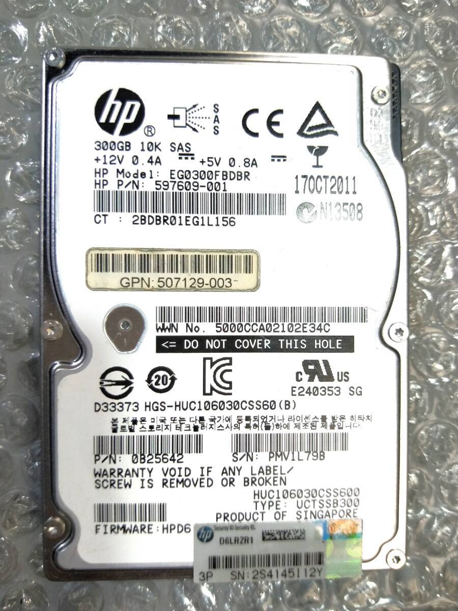 【中古パーツ】 2.5イン HP EG0300FBDBR 10K SAS 300GB HDD 正常品 1台■ SAS 2564